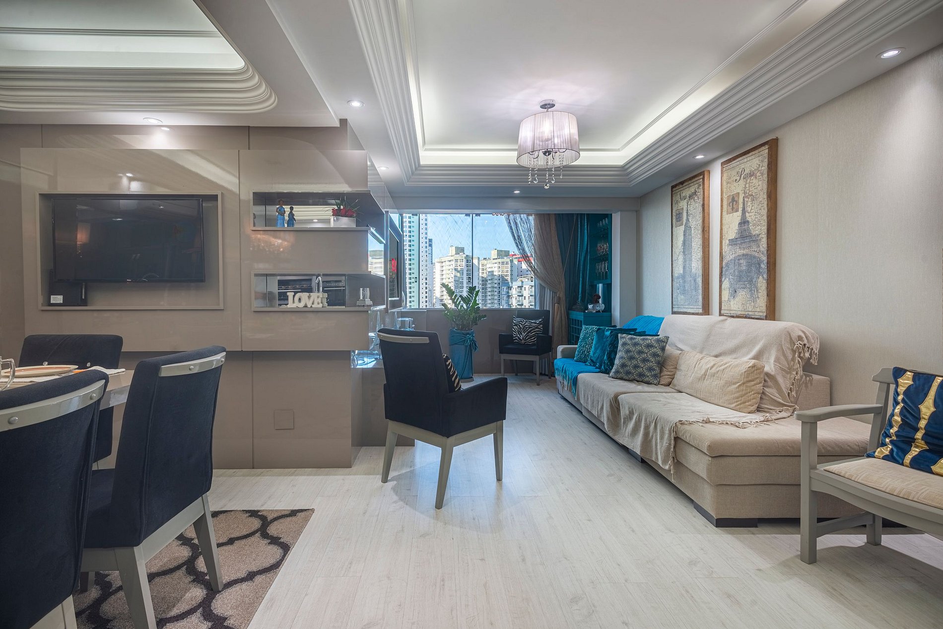 Sala de estar aconchegante com ar-condicionado, ideal para momentos de relaxamento.