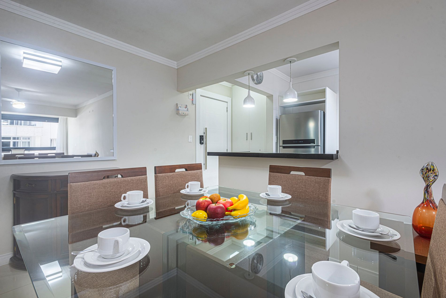 Nosso apartamento oferece uma atmosfera aconchegante e acolhedora, garantindo que você se sinta em casa durante toda a sua estadia. O espaço inclui uma sala de estar confortável, perfeita para relaxar após um dia agitado na cidade. Além disso, a cozinha equipada permitirá que você prepare suas refeições favoritas, caso deseje desfrutar de uma experiência gastronômica mais intimista.