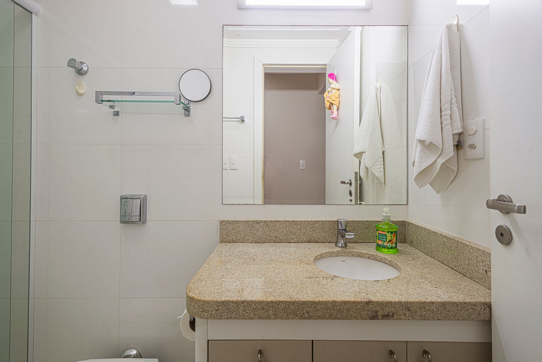 > O apartamento é entregue com 1 rolo de papel higiênico por banheiro para a chegada. Reposições durante a estadia ficam por conta dos hóspedes.