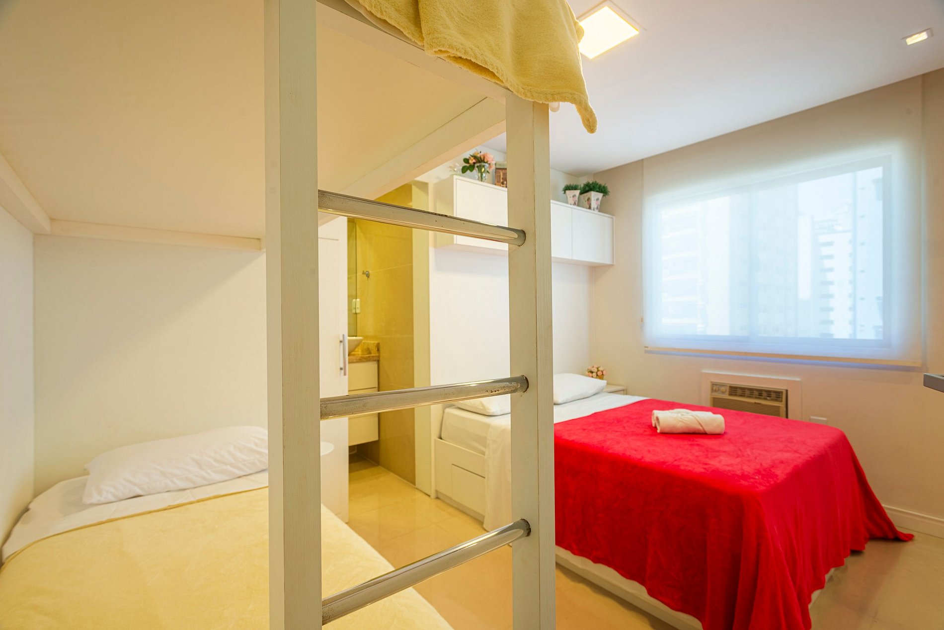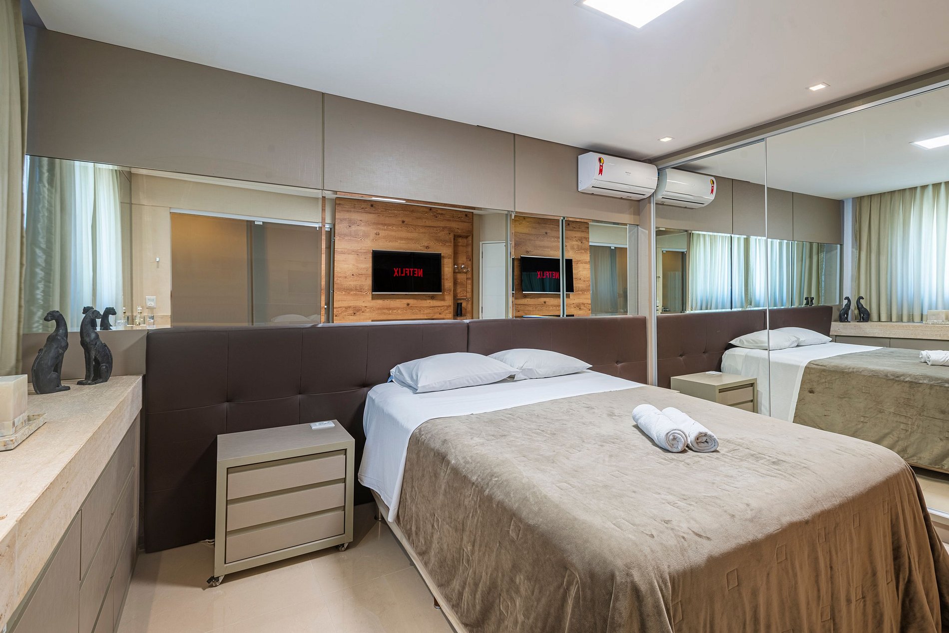 A acomodação conta com ar condicionado nos quatro quartos e também na sala de estar.
