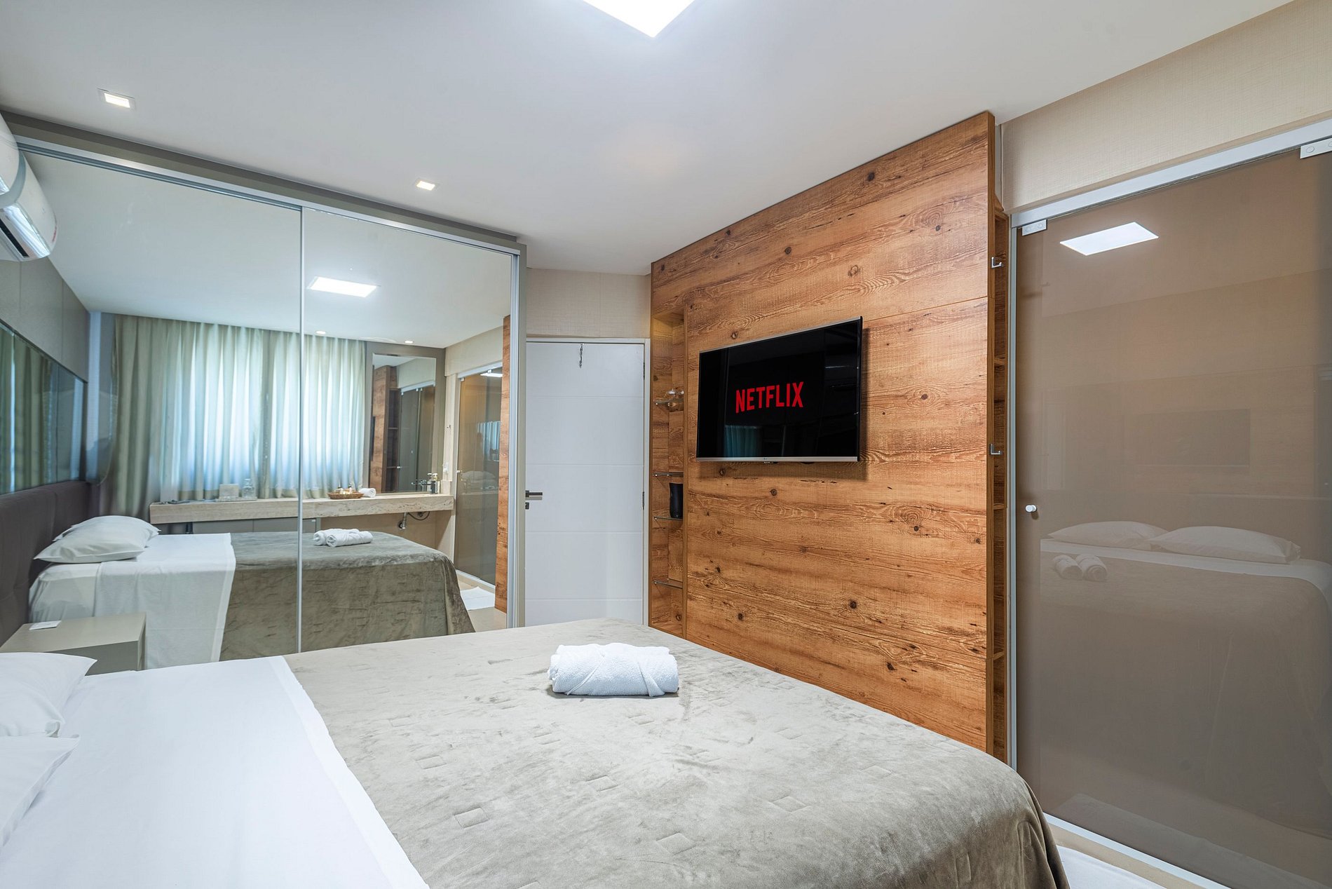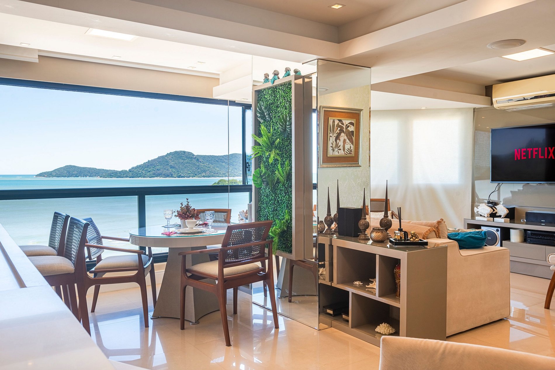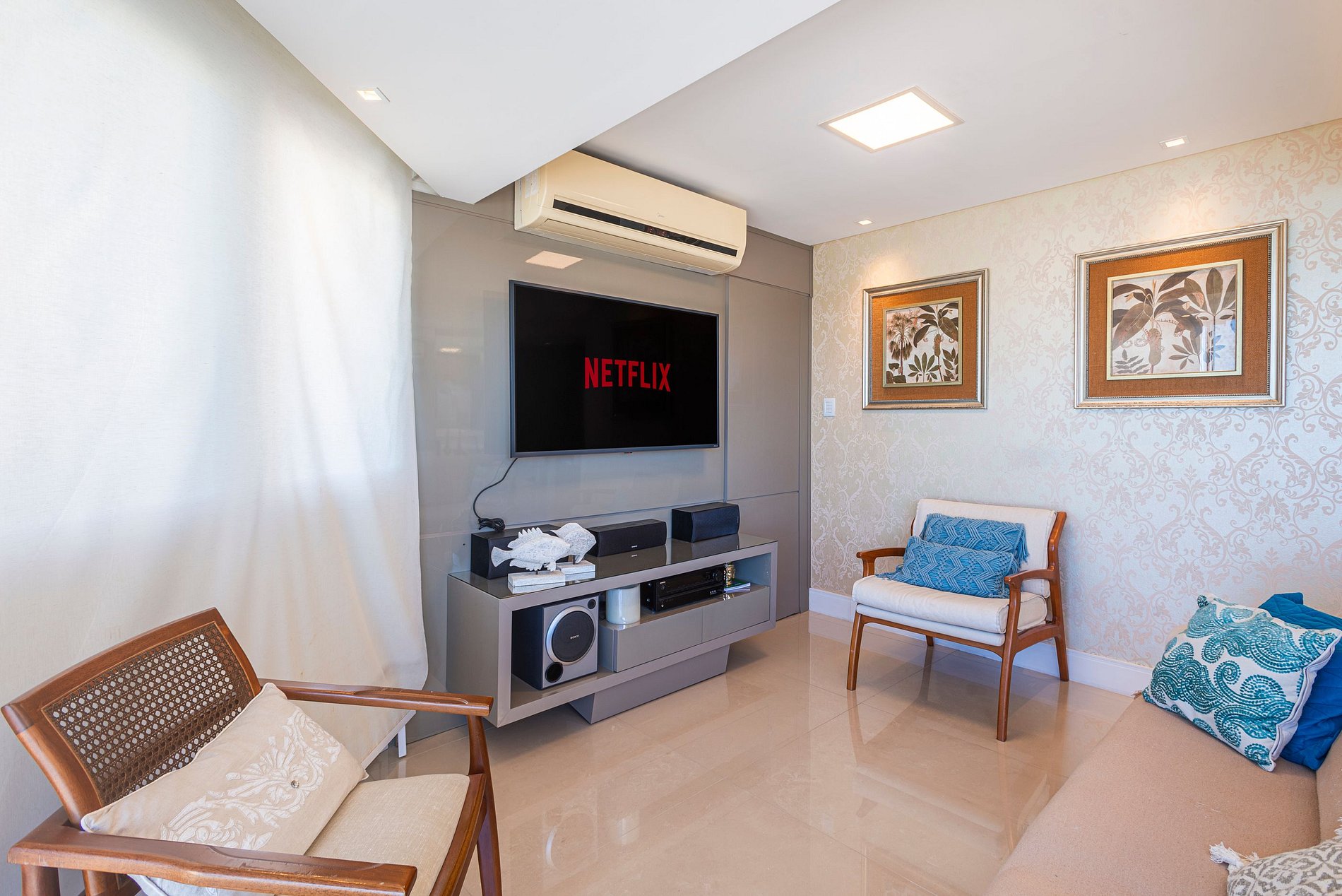 A acomodação conta com ar condicionado nos quatro quartos e também na sala de estar.