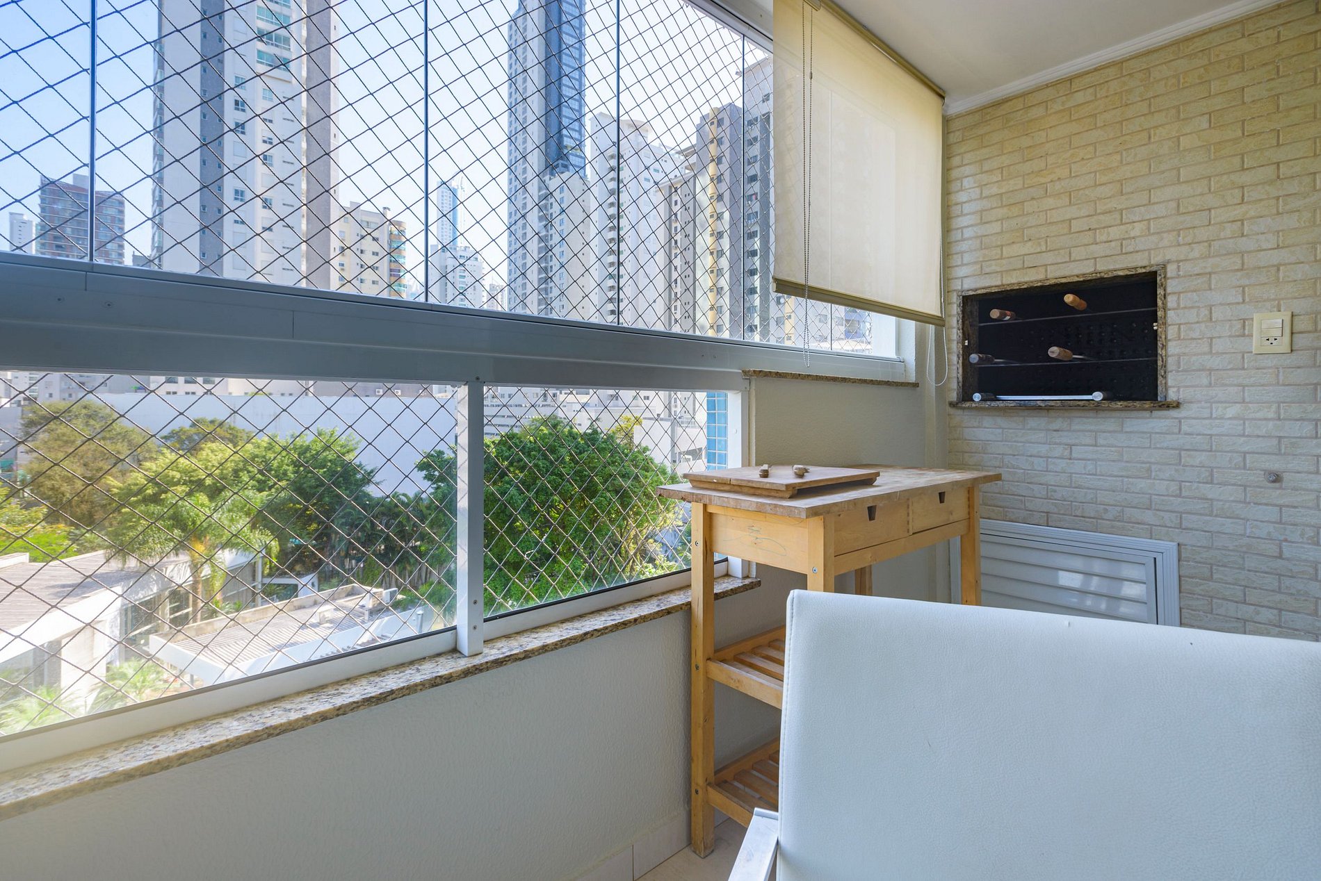 Apartamento arejado e iluminado, com ampla sacada com churrasqueira a carvão.