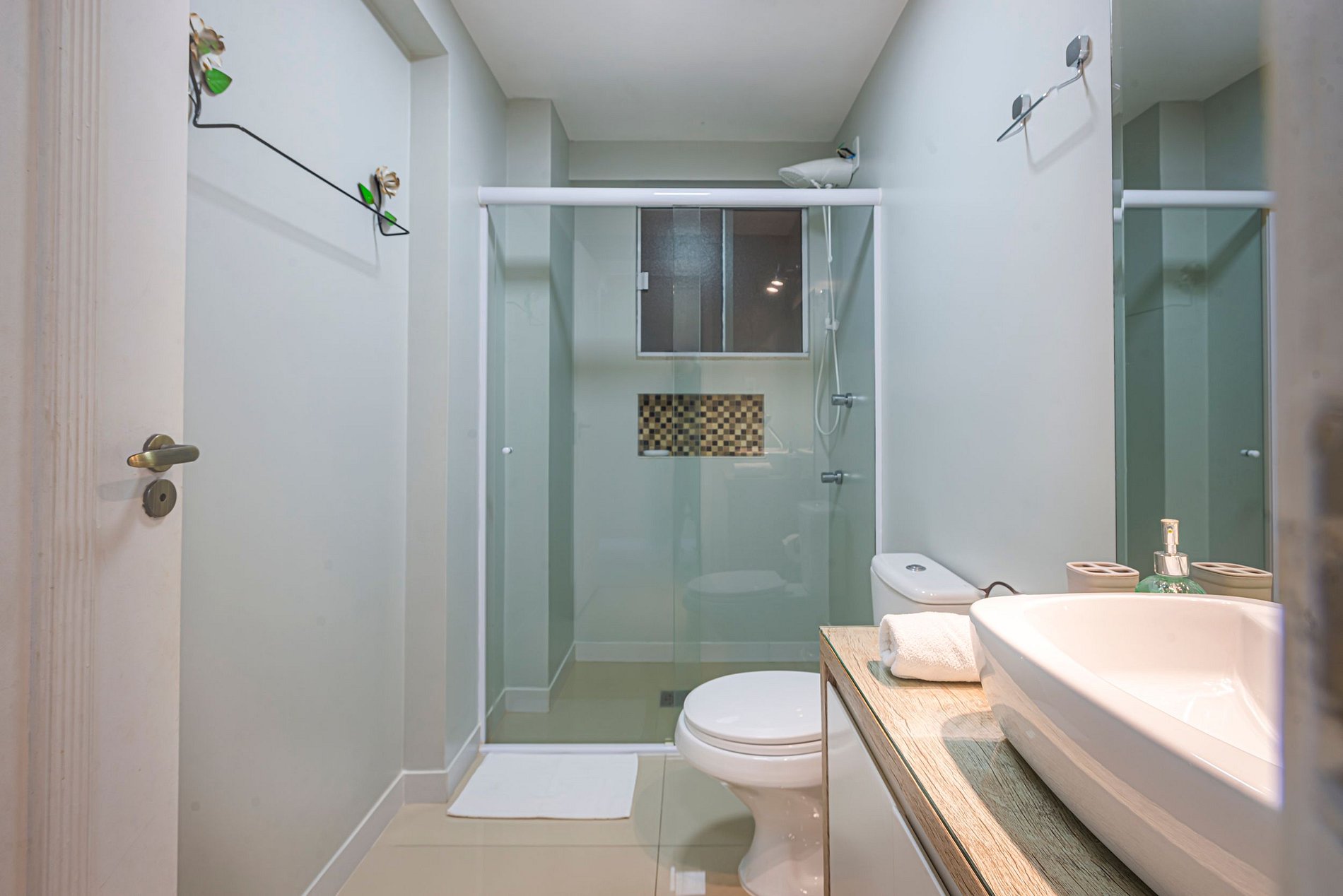 > O apartamento é entregue com 1 rolo de papel higiênico por banheiro para a chegada. Reposições durante a estadia ficam por conta dos hóspedes.