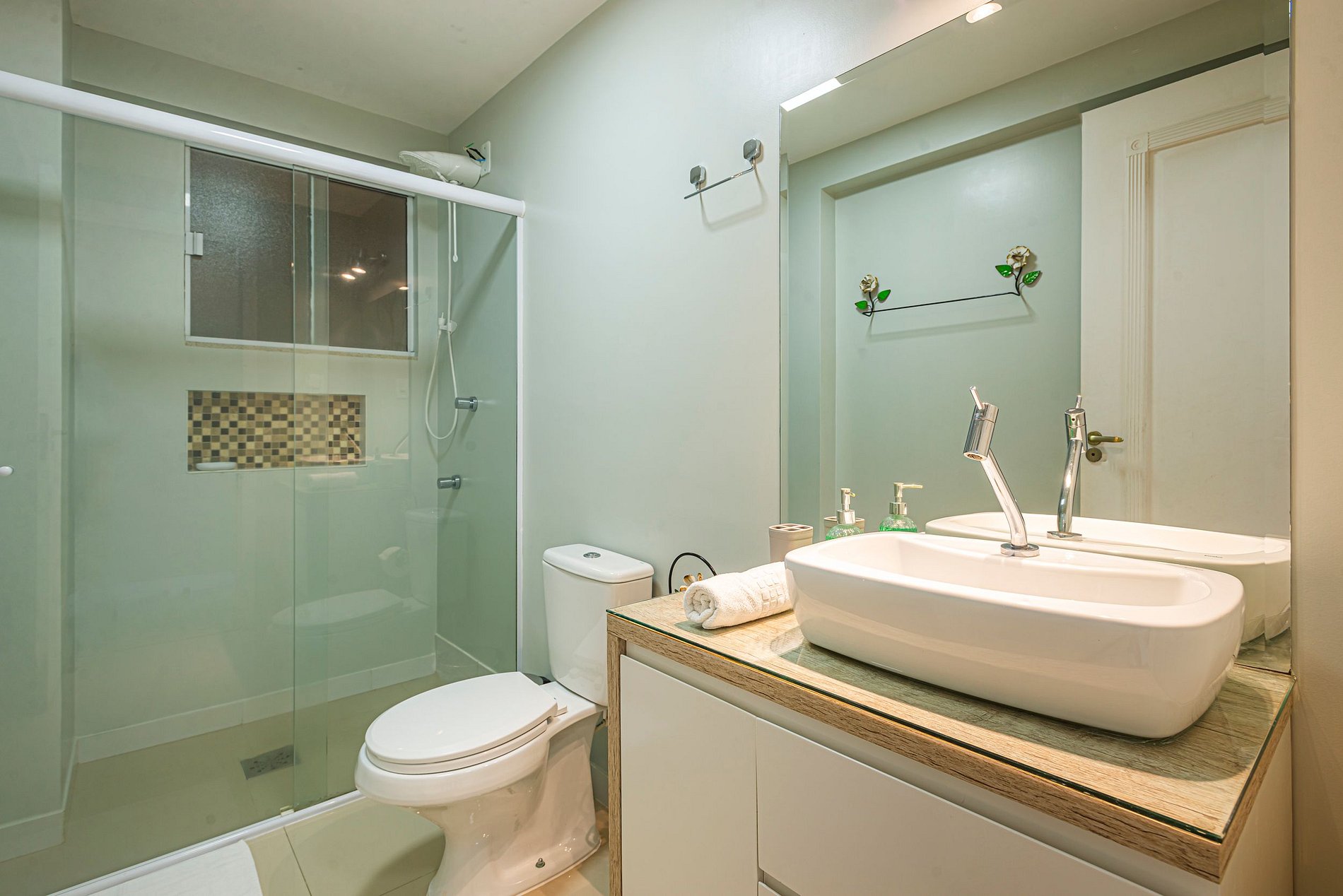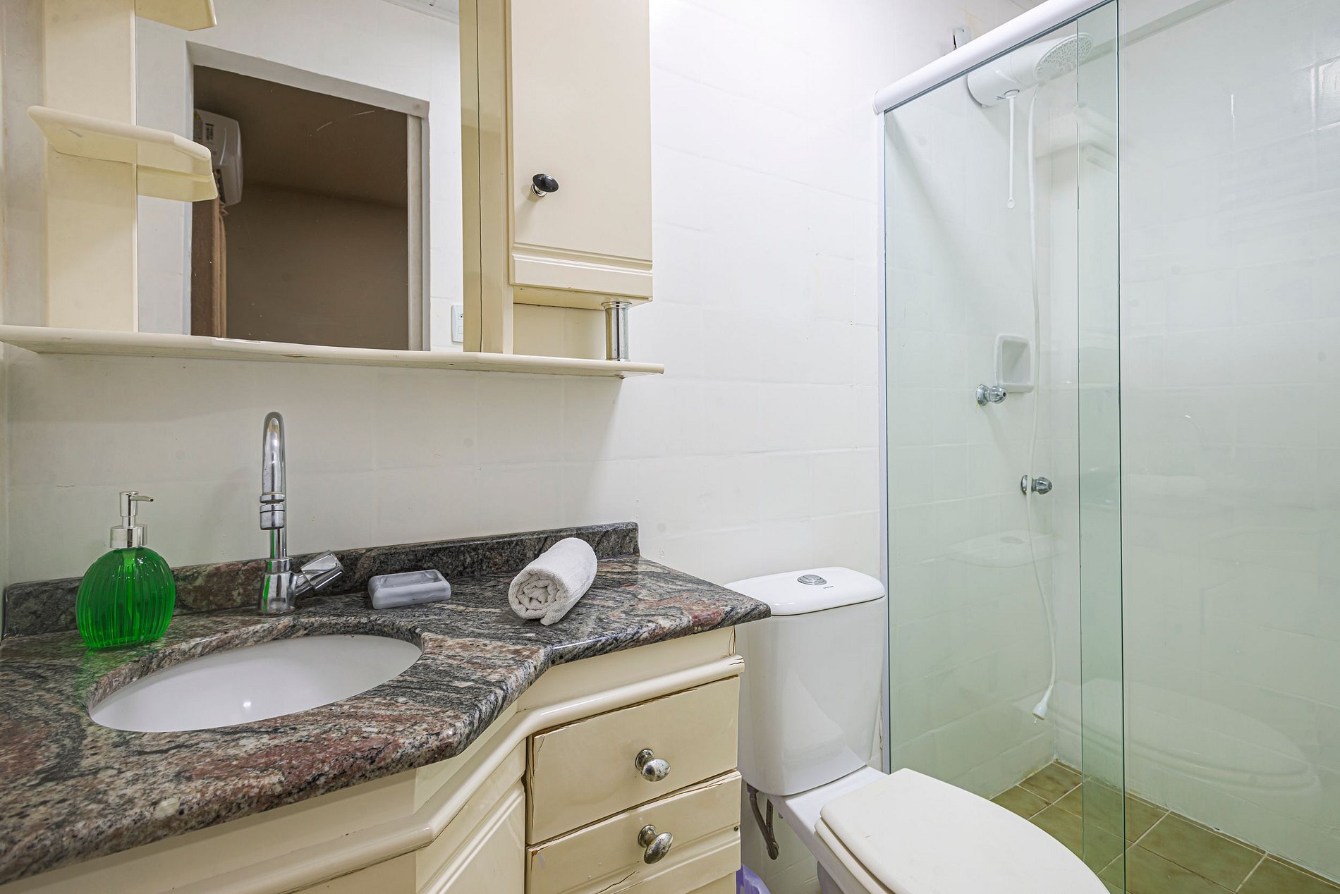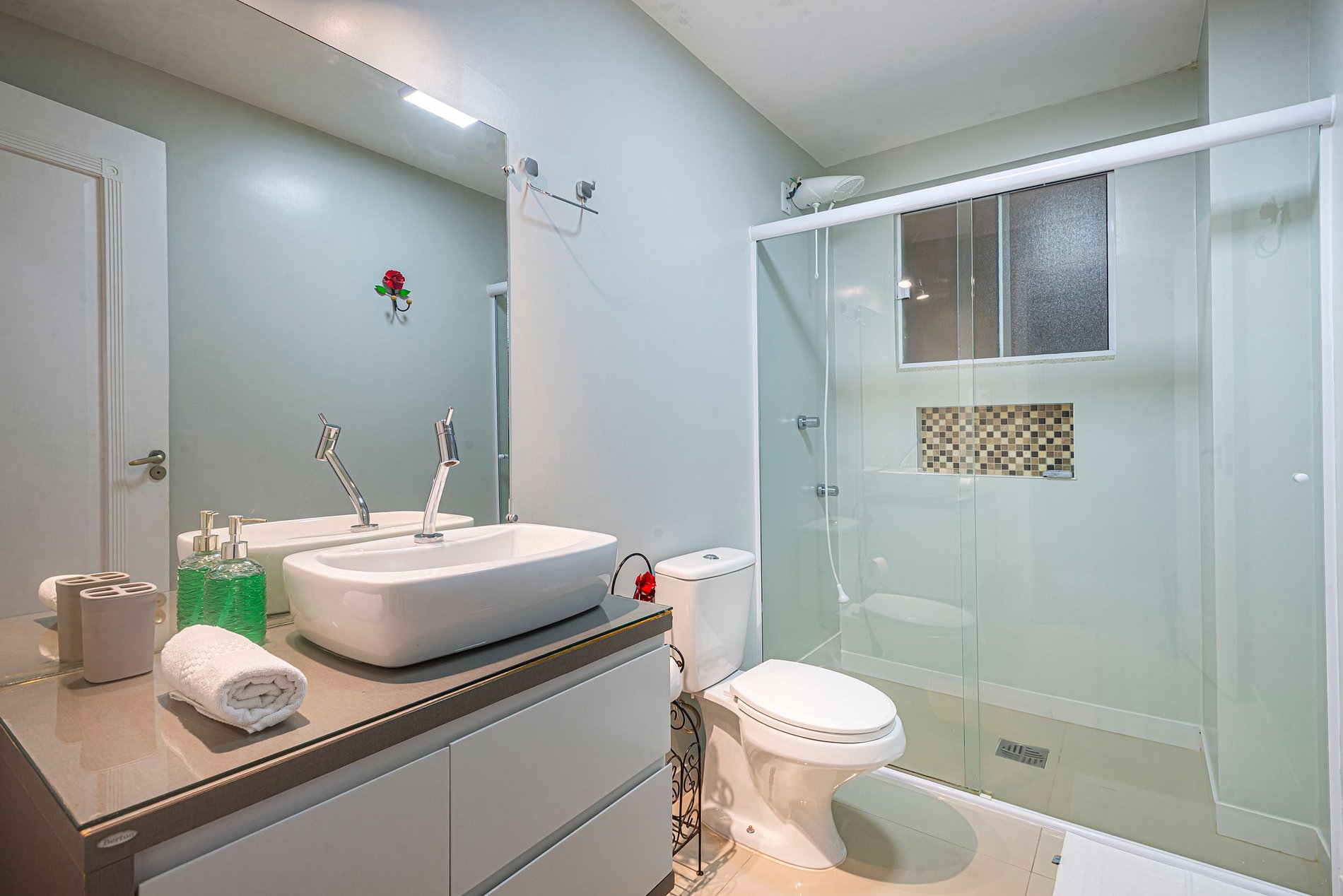 > O apartamento é entregue com 1 rolo de papel higiênico por banheiro para a chegada. Reposições durante a estadia ficam por conta dos hóspedes.