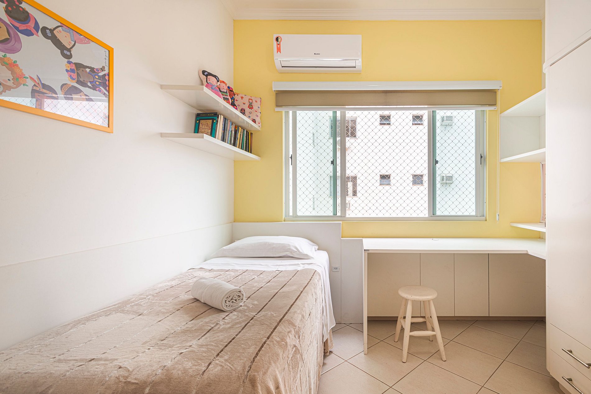 3 quartos (sendo 1 suíte), todos com ar-condicionado