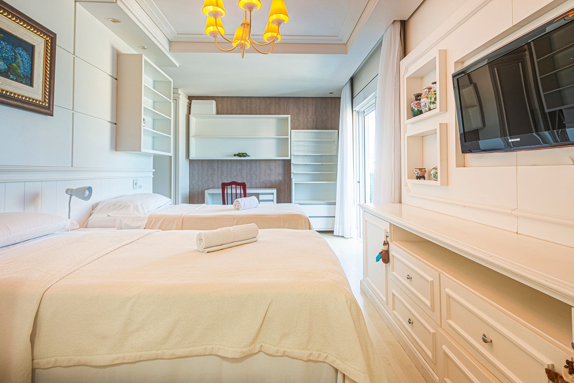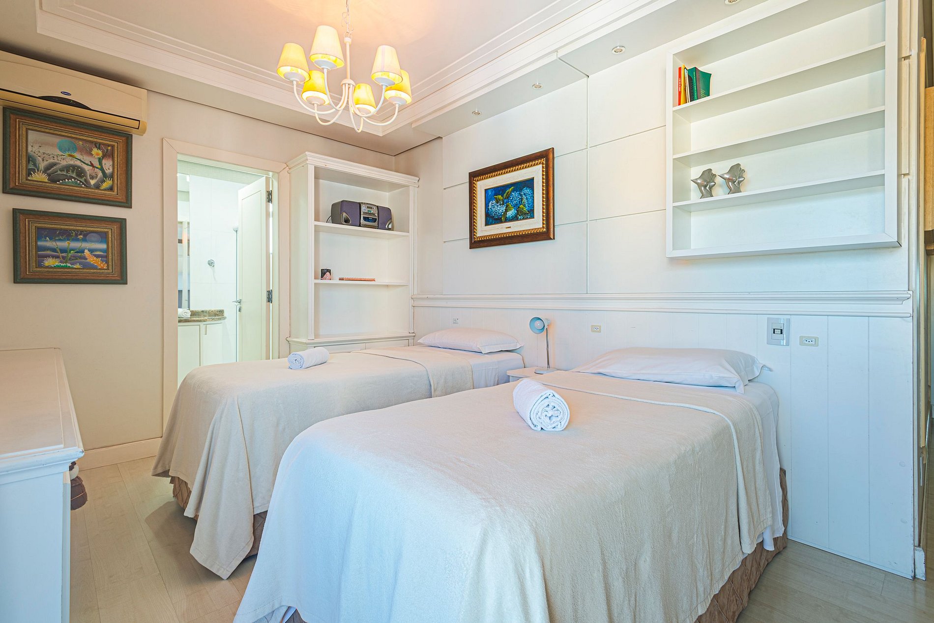 O apartamento possui ar-condicionado nas três suítes e também na sala de estar.