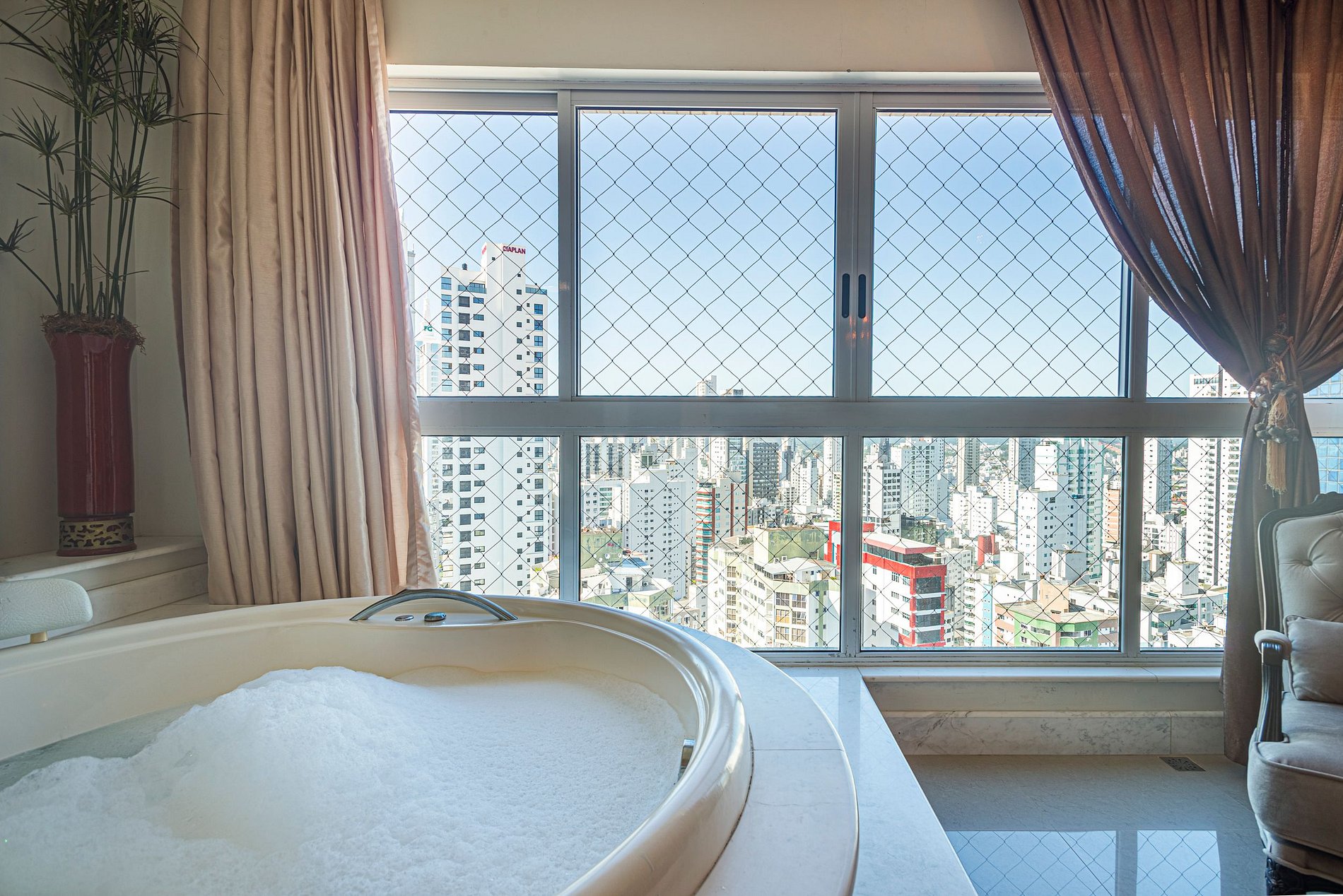 Localizado no 24º andar do Edifício Vermont – Embraed, este apartamento de alto padrão oferece uma experiência de hospedagem única, combinando vista panorâmica para a cidade, amplitude, conforto e sofisticação a apenas 200 metros da praia.