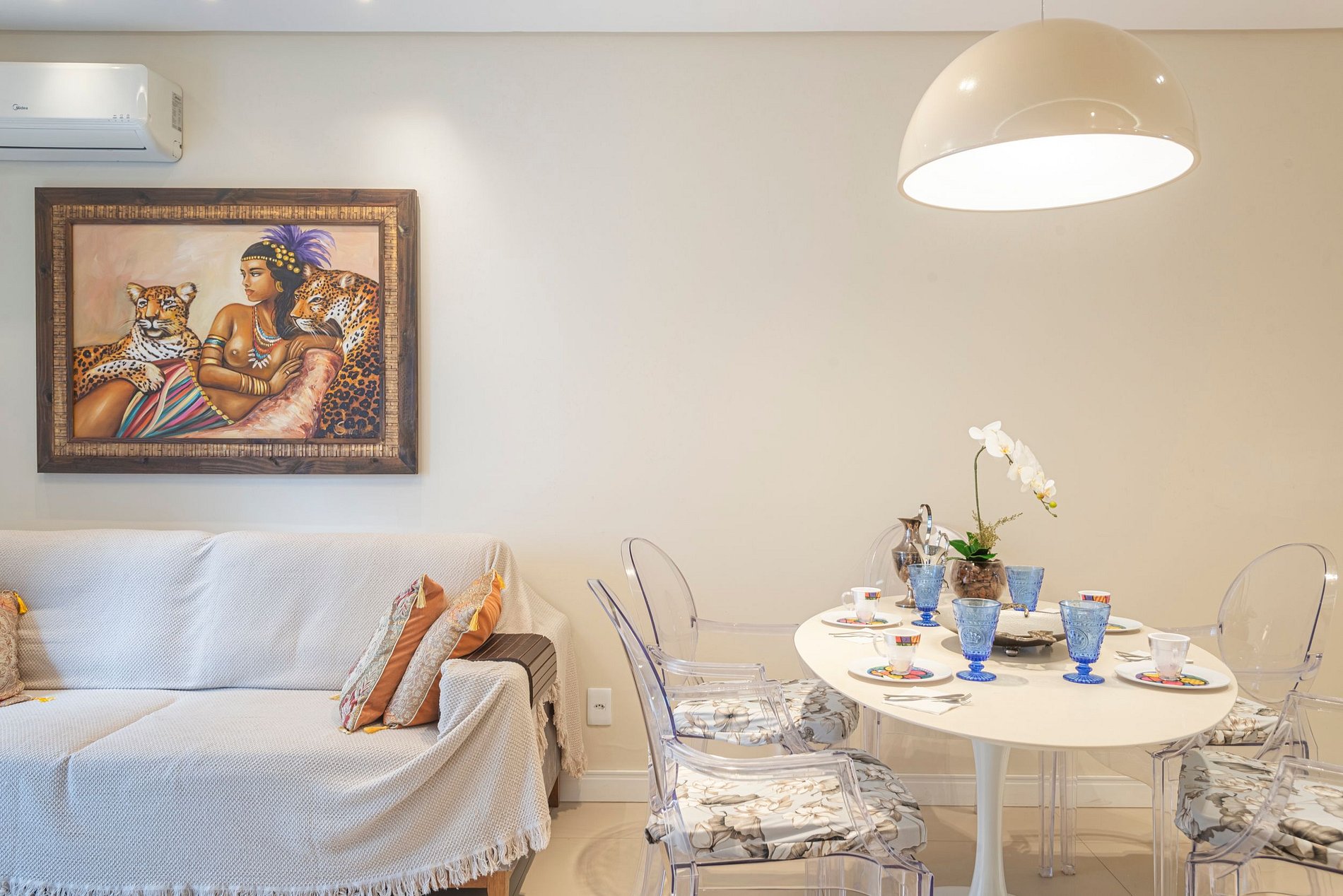 A acomodação conta com ar condicionado nos dois quartos e também na sala de estar.