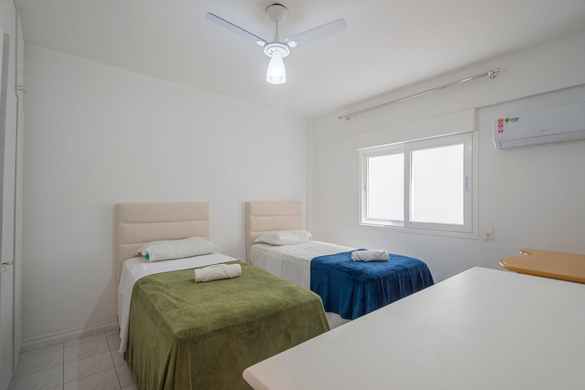 - Uma suíte mais dois dormitórios, todos eles com ar condicionado.