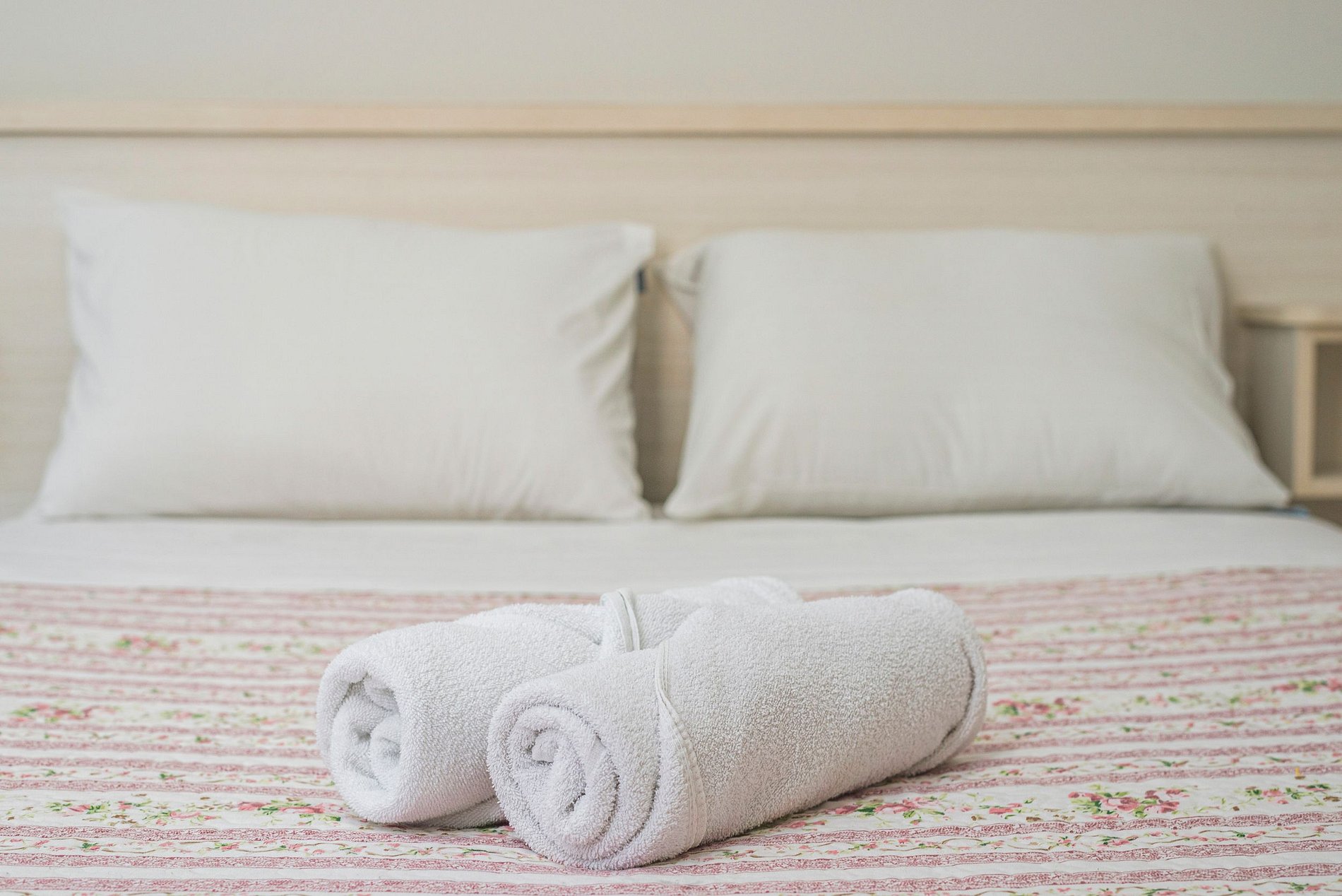 > Roupas de cama e banho a disposição dos hóspedes.
