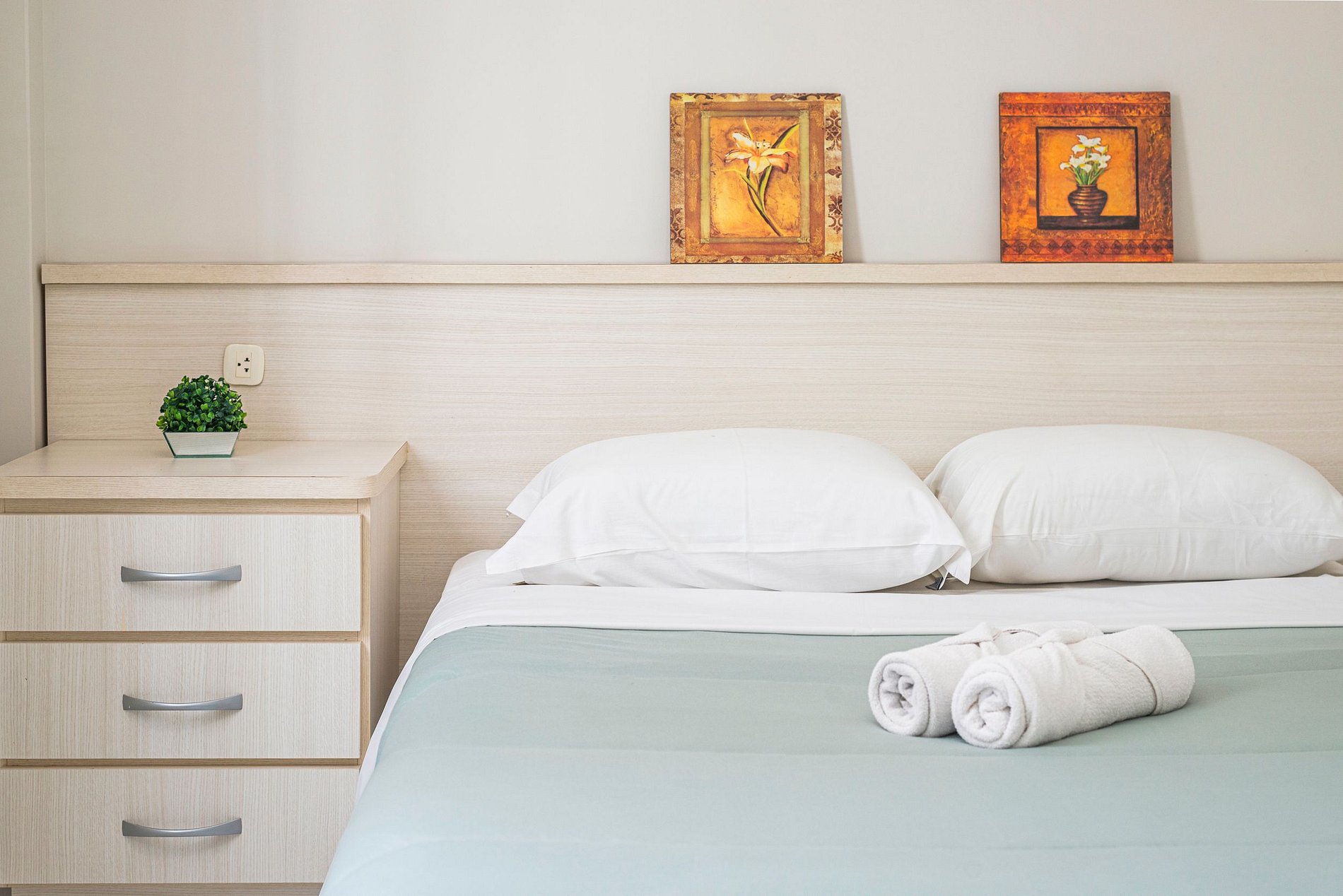Você encontrará todas as camas prontas para uso, com roupas de cama limpas e higienizadas, acompanhadas de travesseiros e mantas. Além disso, fornecemos jogos de banho completos, incluindo uma toalha de banho para cada hóspede.