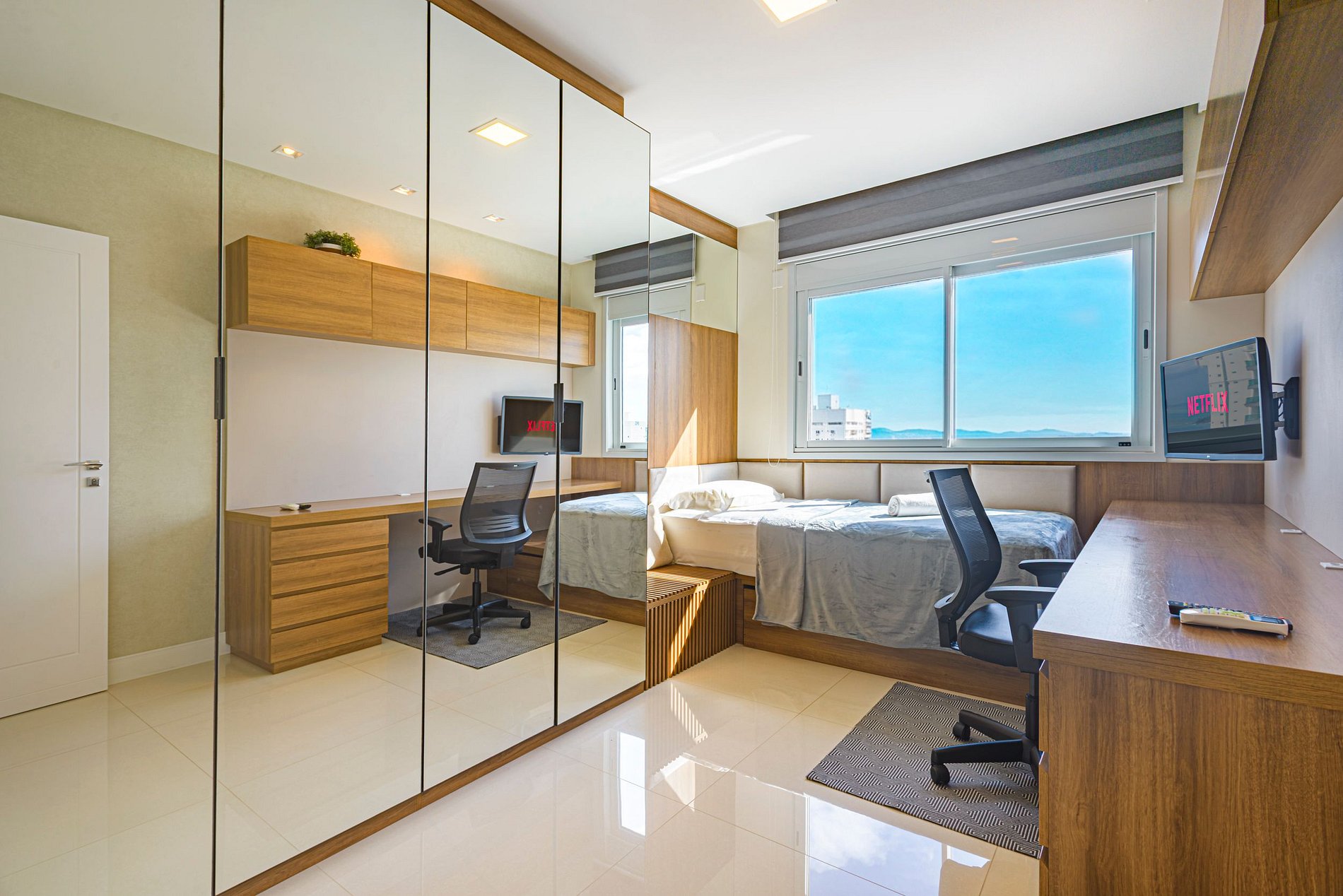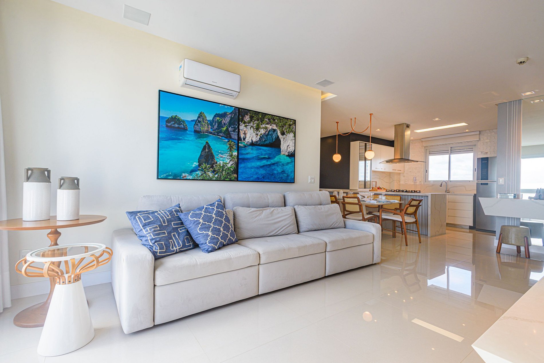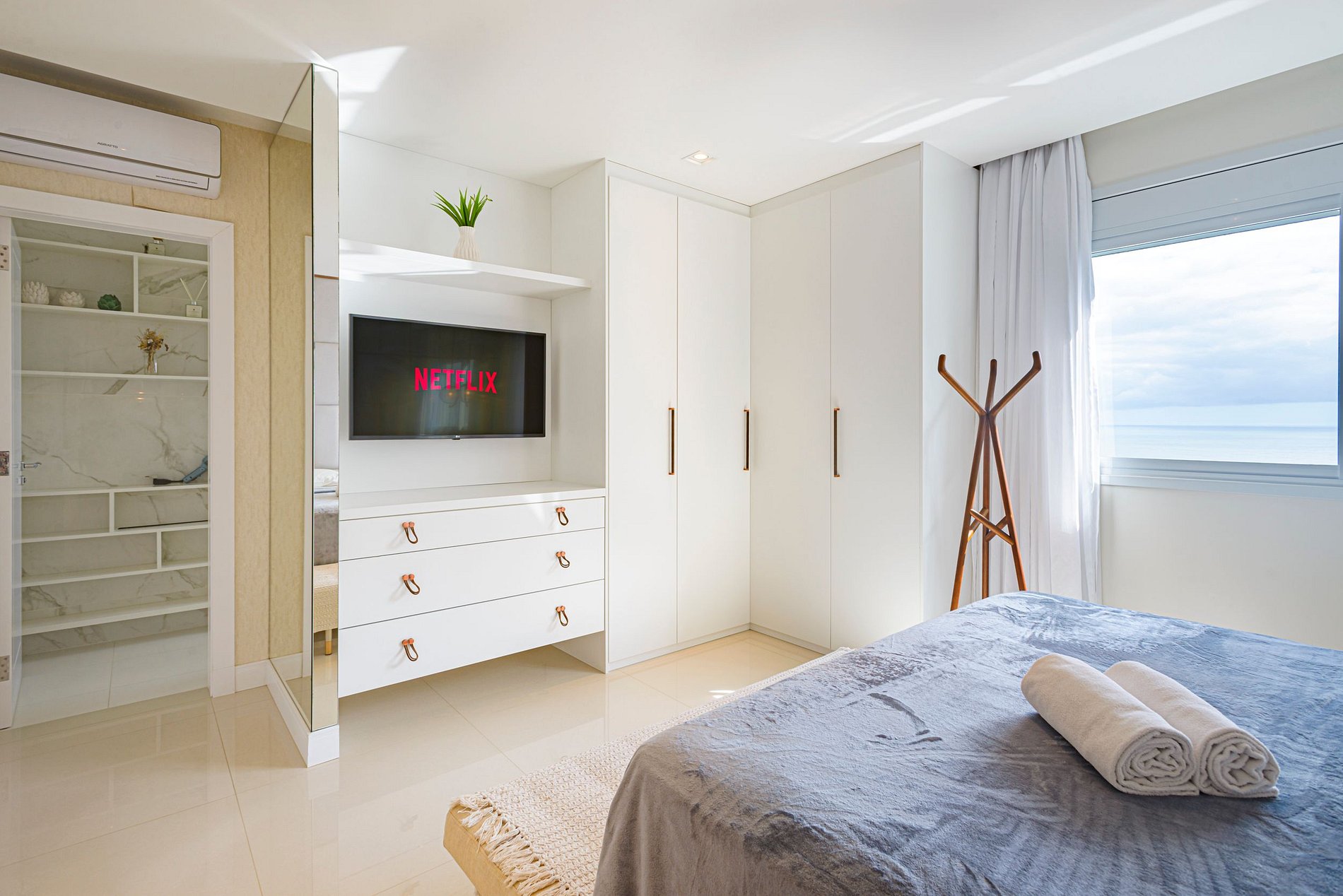 > 3 quartos espaçosos, todos com ar-condicionado, Smart TV e uma decoração pensada para o conforto.