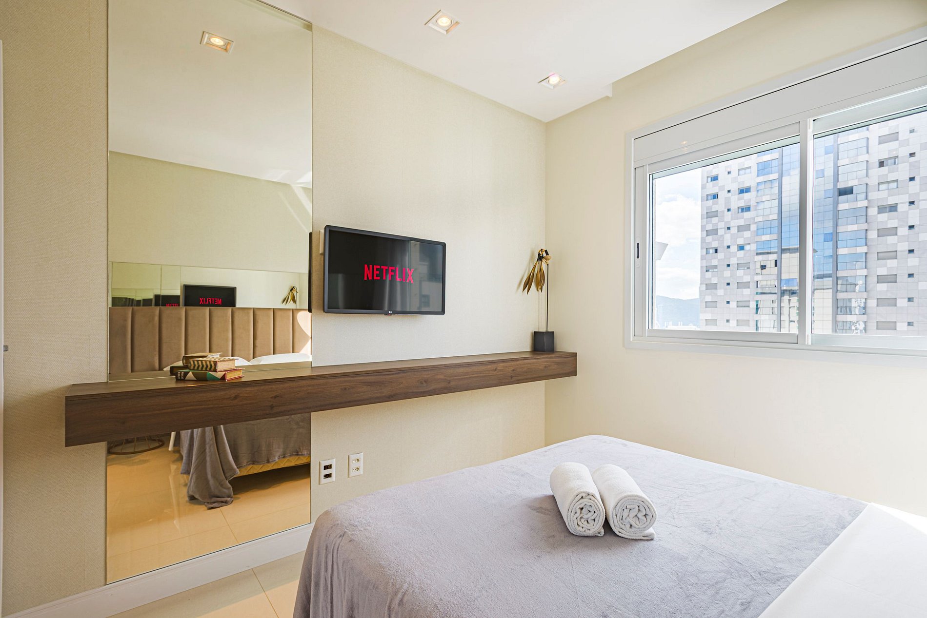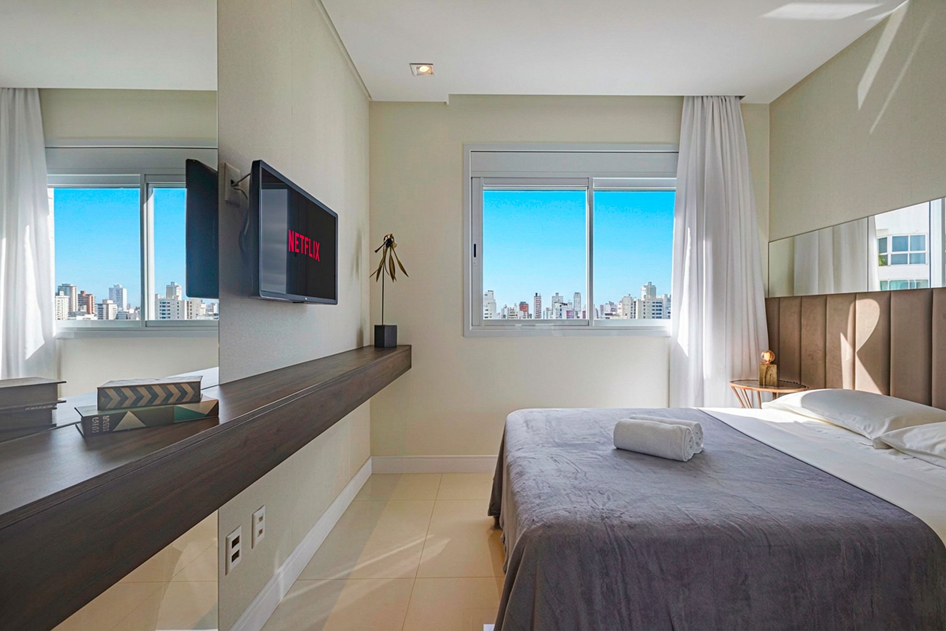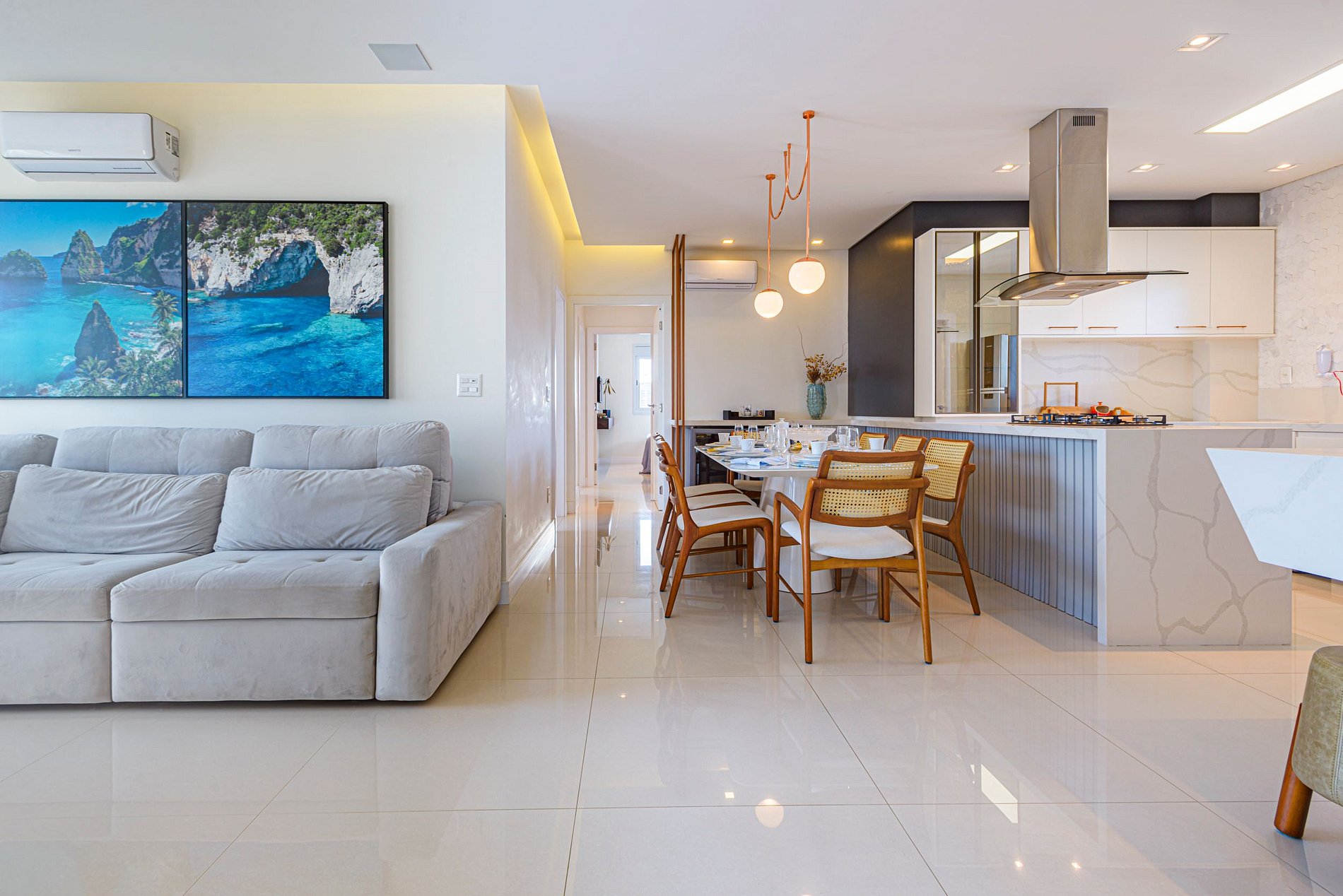 > 3 quartos espaçosos, todos com ar-condicionado, Smart TV e uma decoração pensada para o conforto.