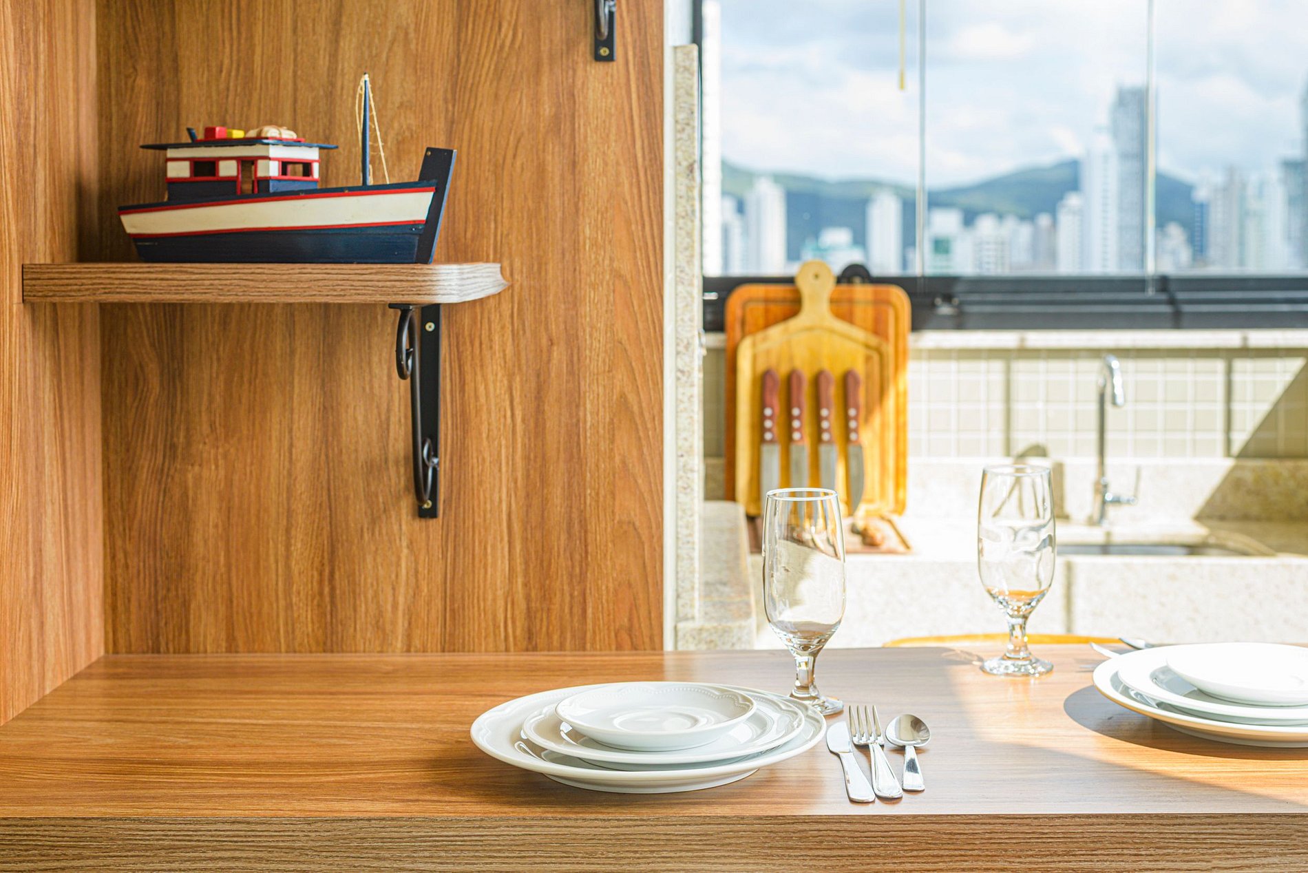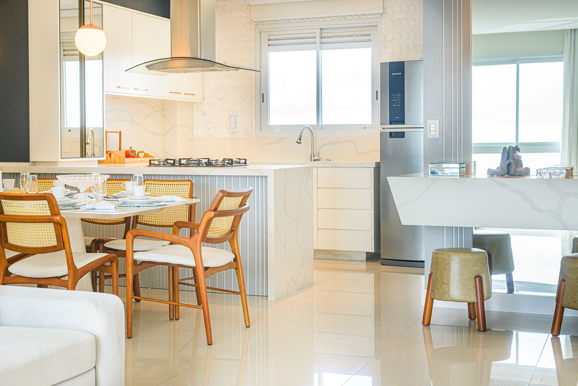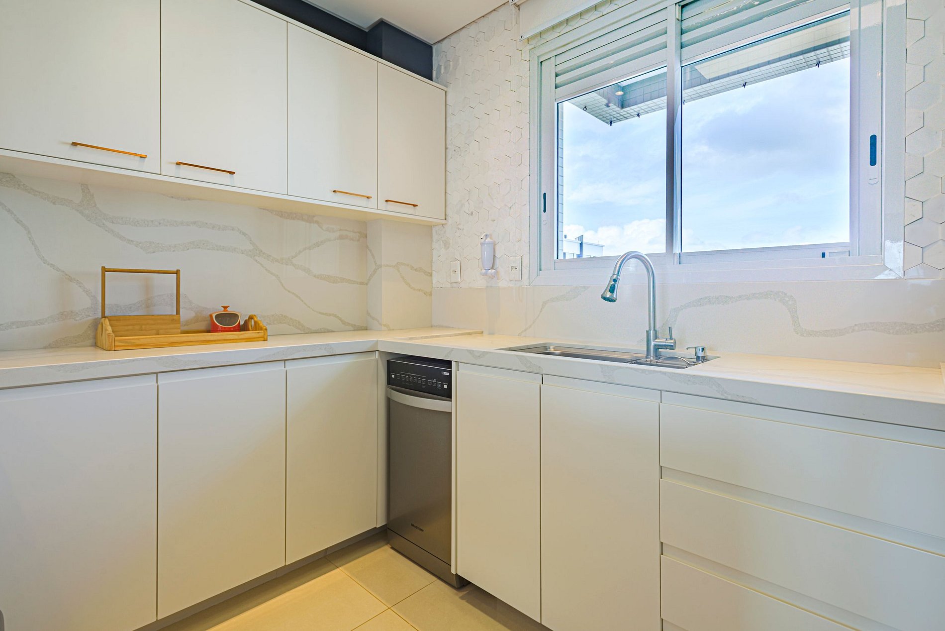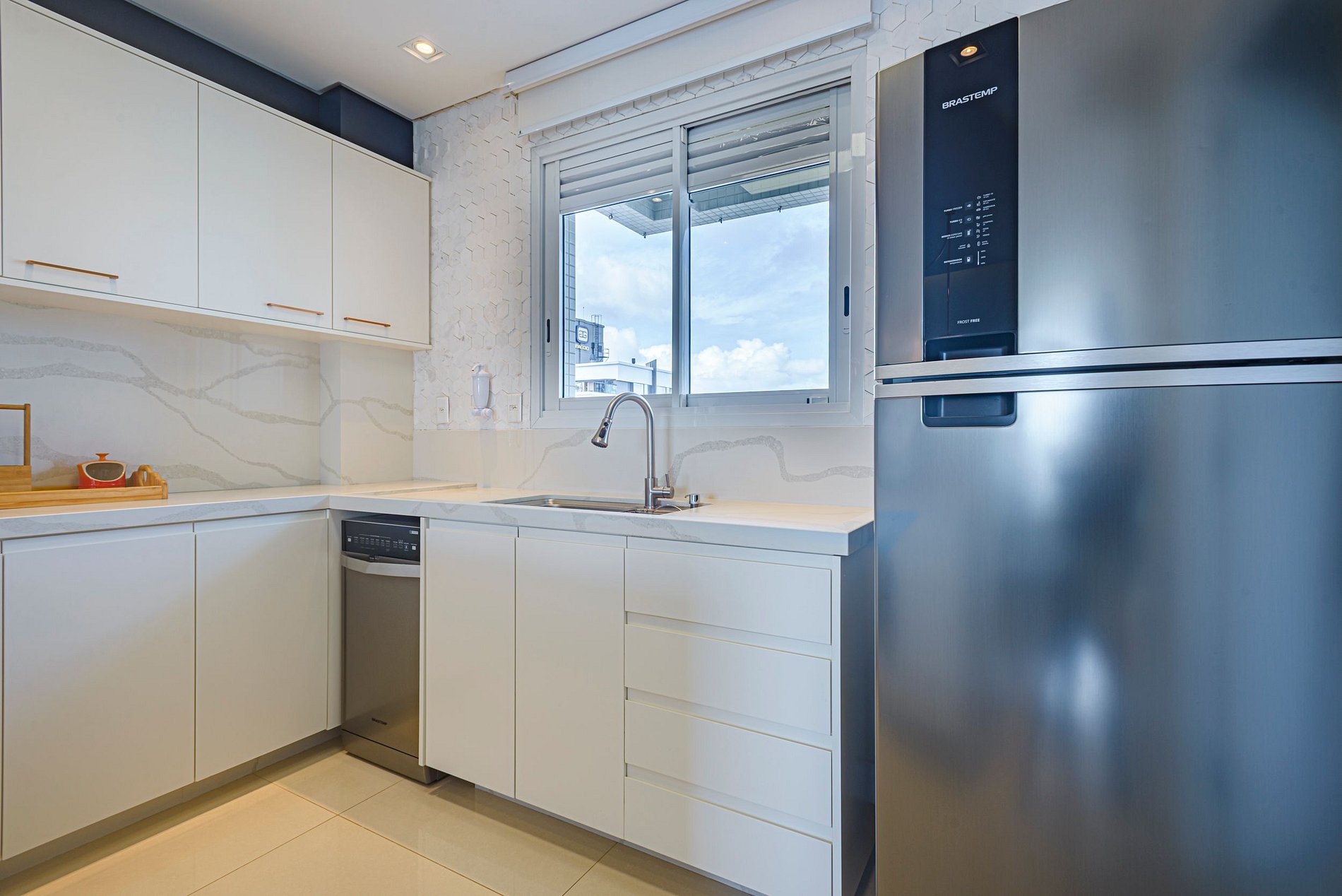 > Cozinha moderna e totalmente equipada, com utensílios e eletrodomésticos que permitem preparar desde um café da manhã até um jantar especial.