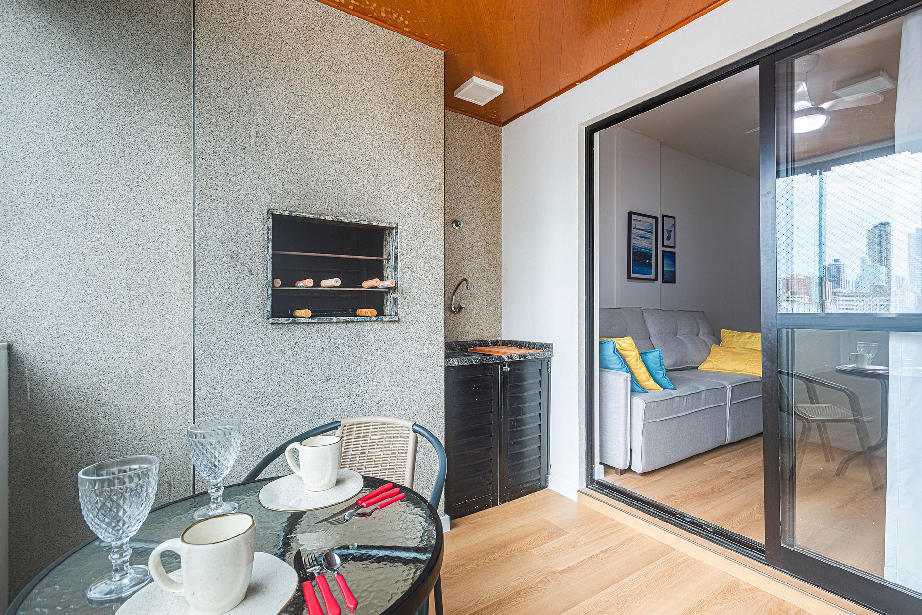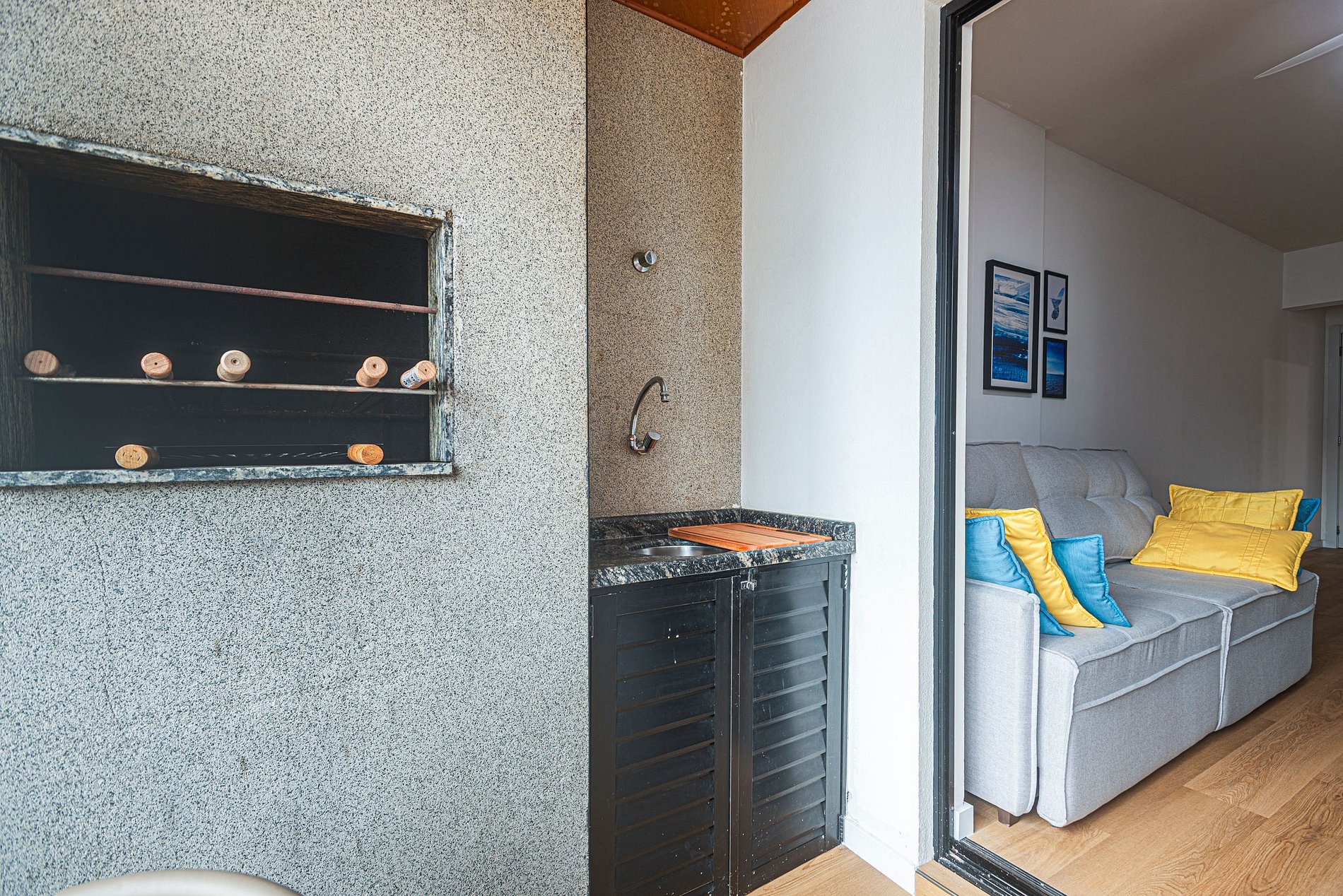 - Na sacada, você ainda conta com churrasqueira — perfeita para curtir bons momentos e fazer aquele churrasco com praticidade.