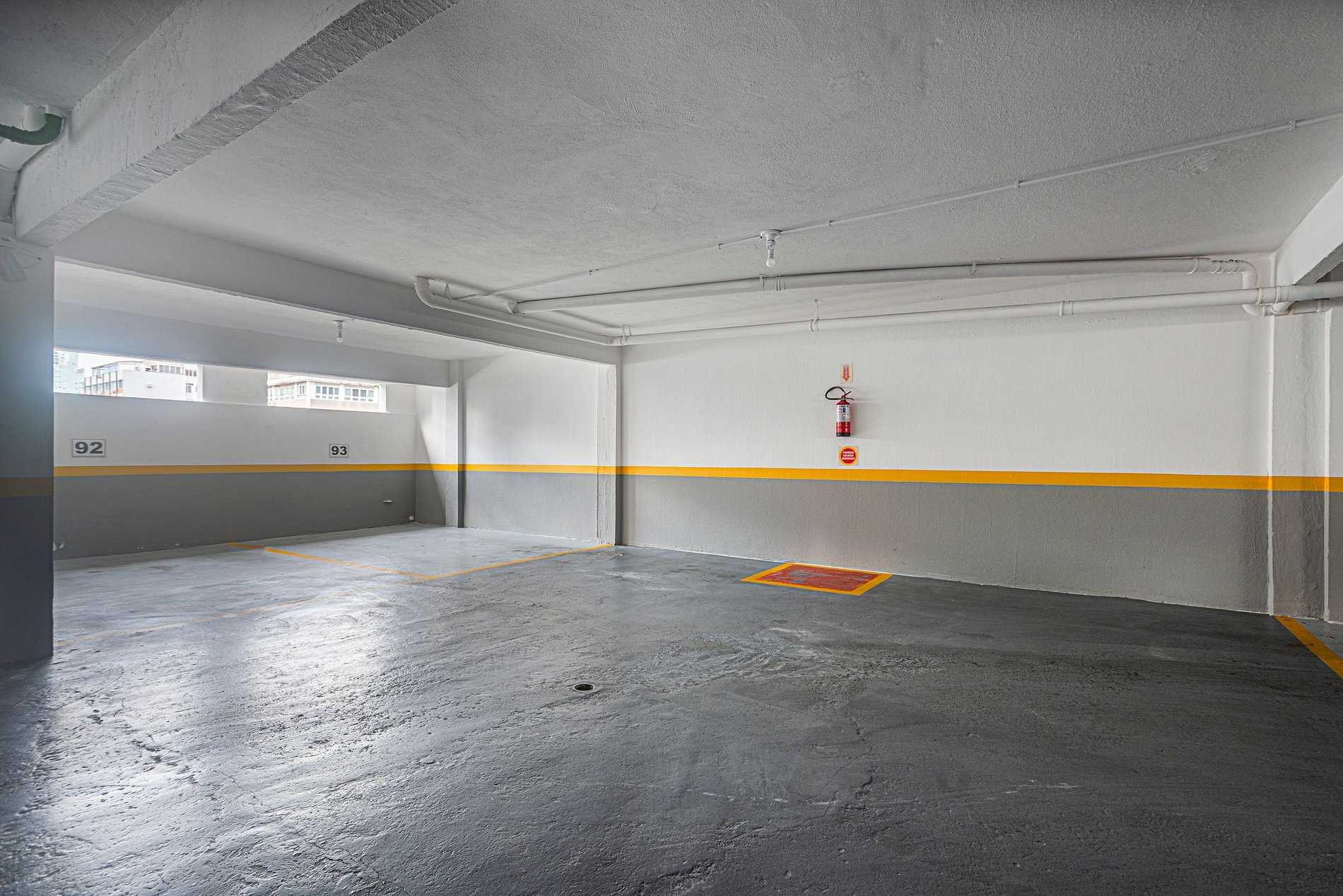 Duas vagas de garagem privativas disponíveis, sendo uma vaga delas mais apertada, destinada a veículo pequenos/médios. Caminhonetes e demais carros grandes podem não ser compatíveis.