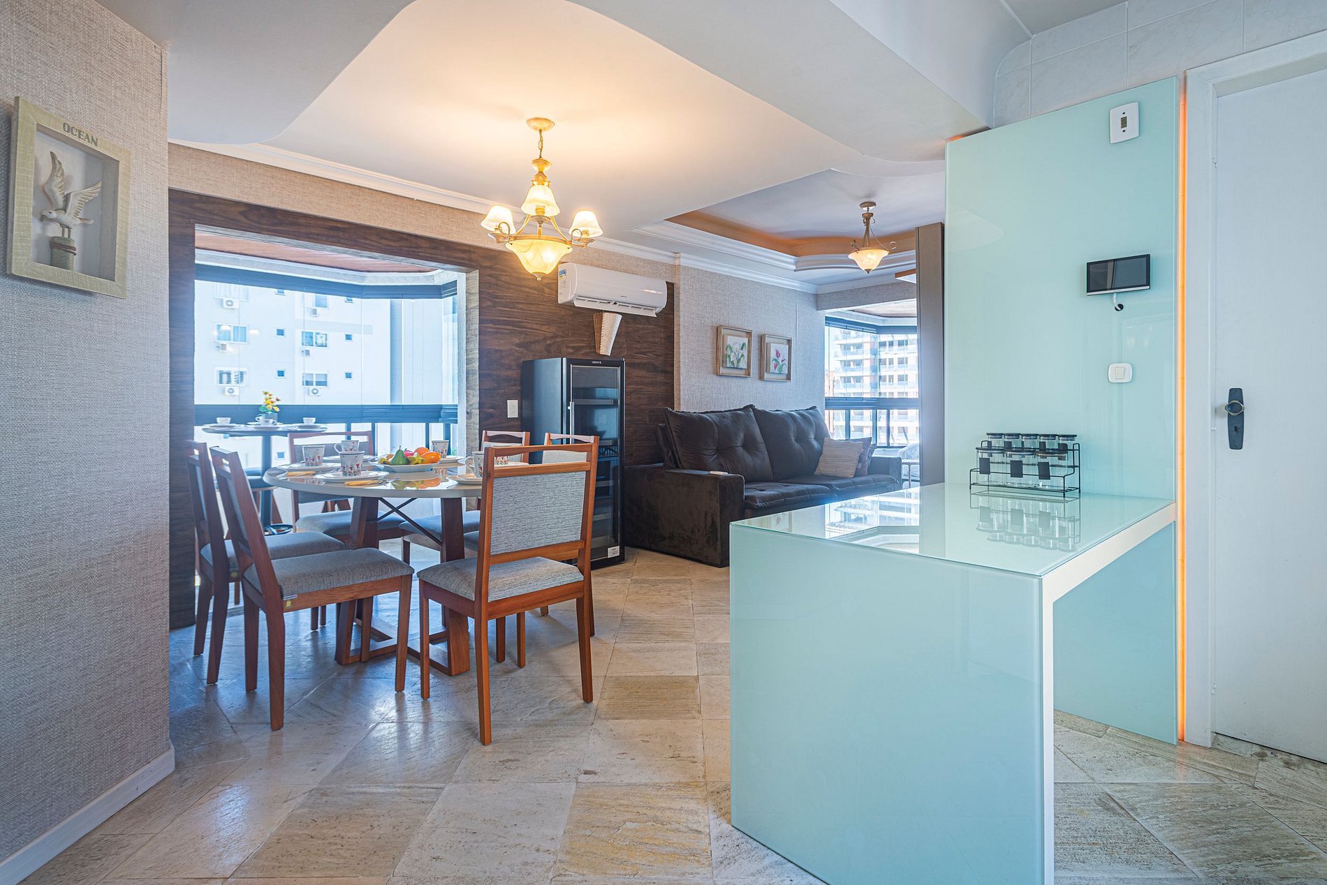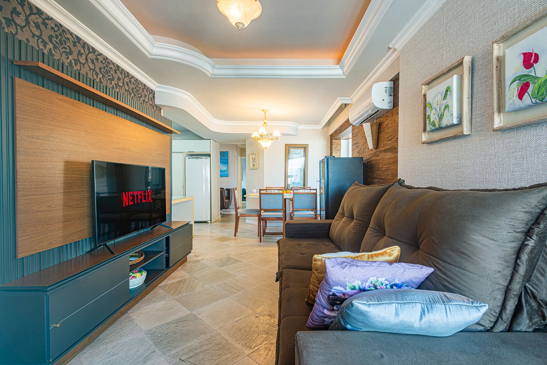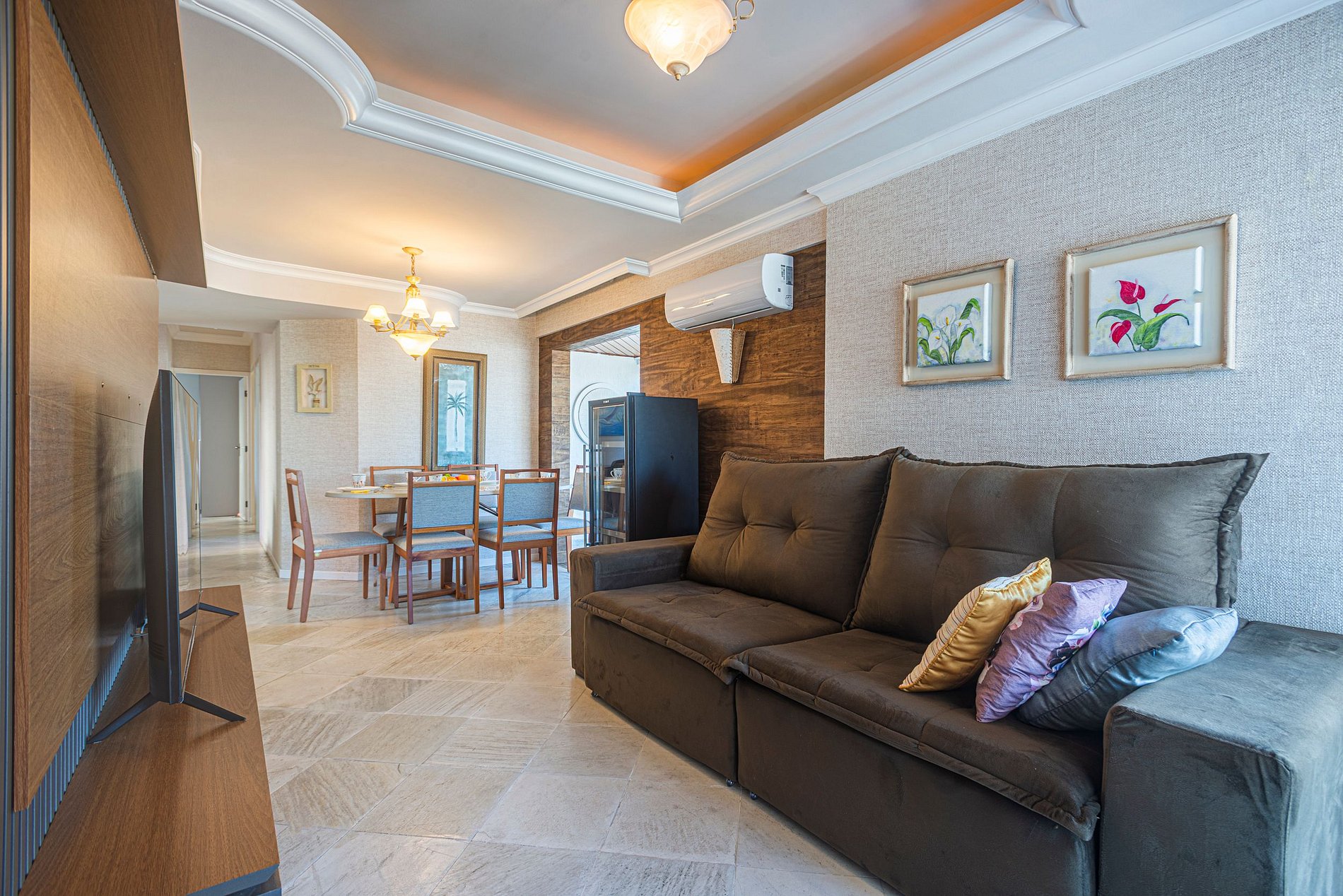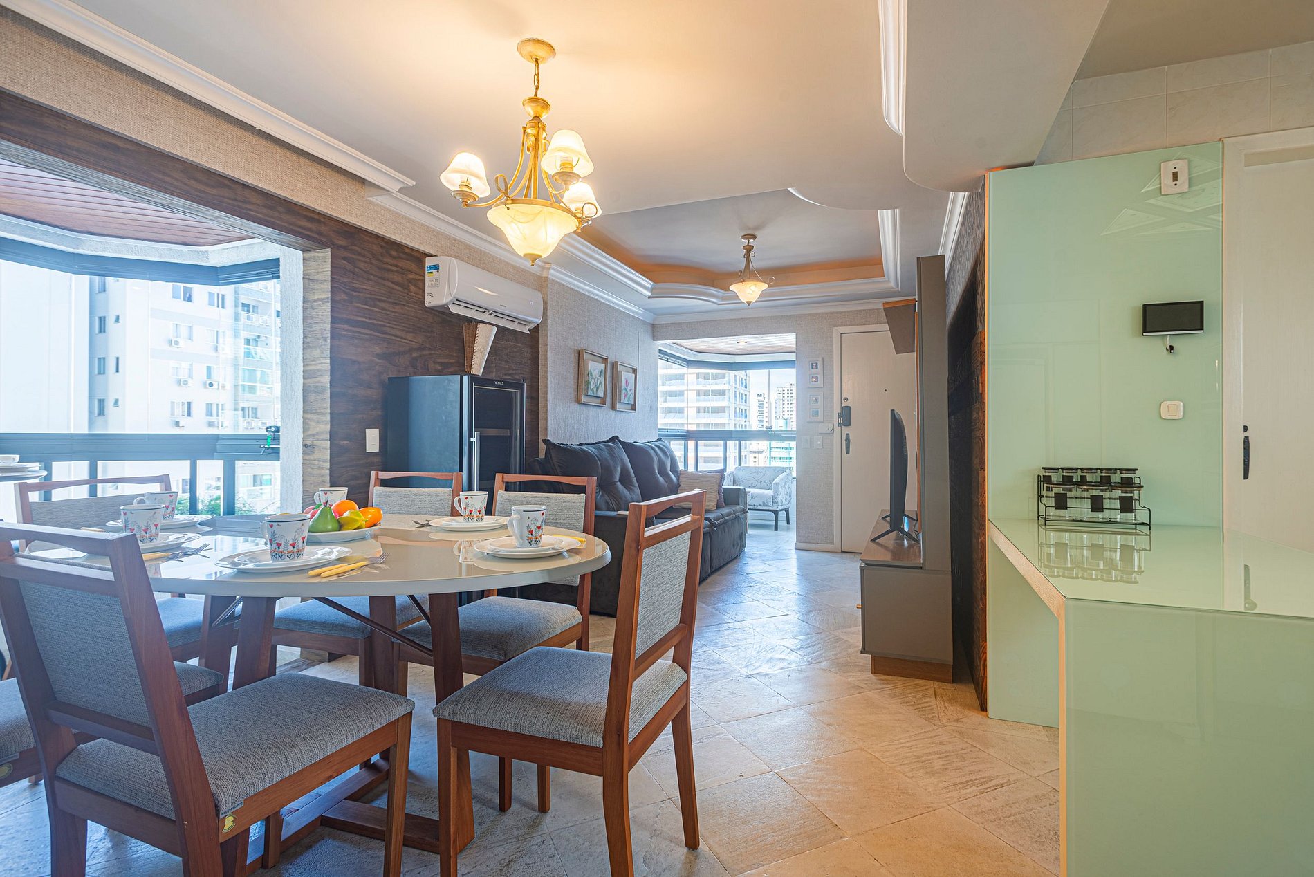> 1 suíte + 2 dormitórios, todos com ar-condicionado, bem como na sala de estar.