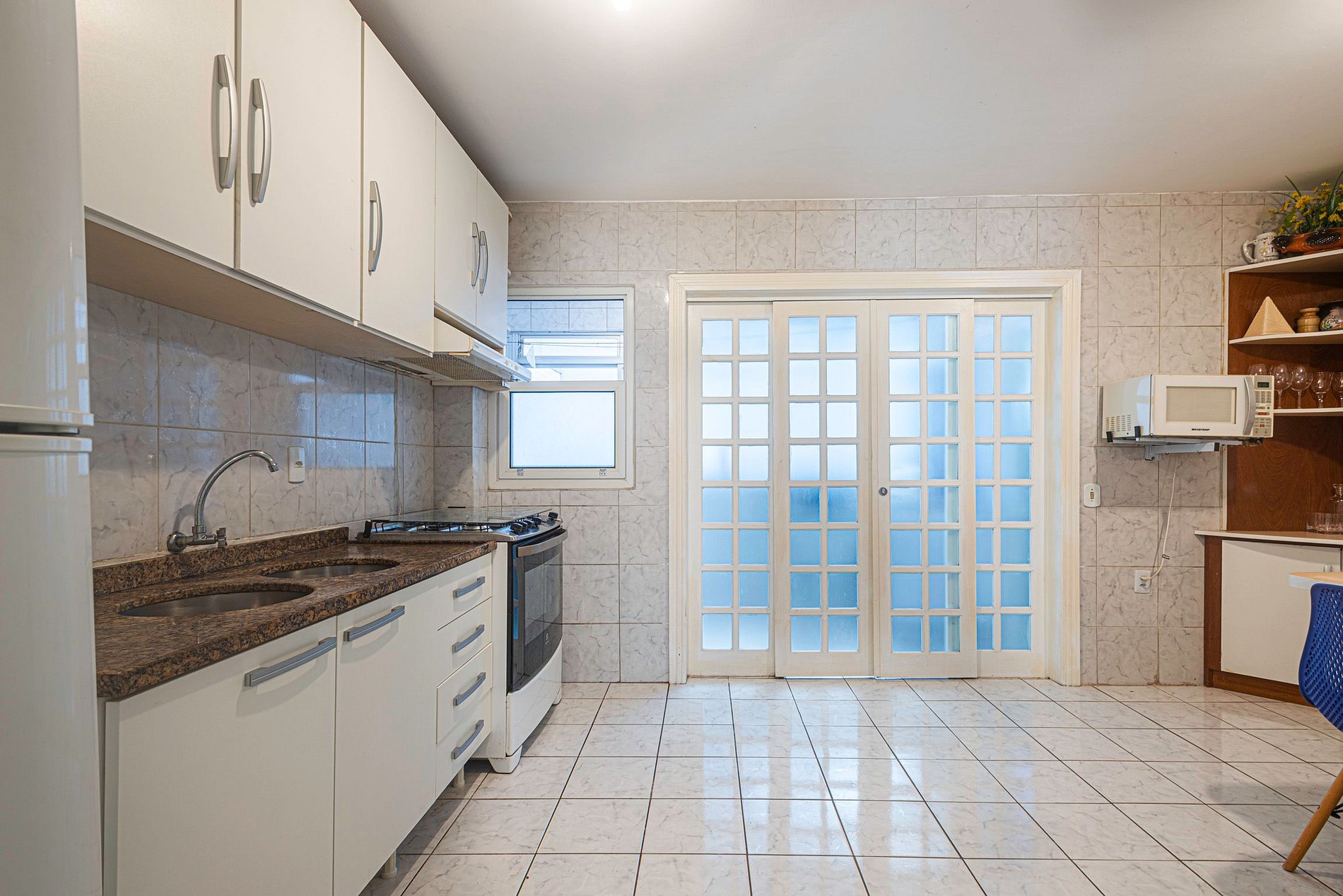A cozinha está equipada com eletrodomésticos e oferece um ambiente prático e funcional para preparar suas refeições favoritas.