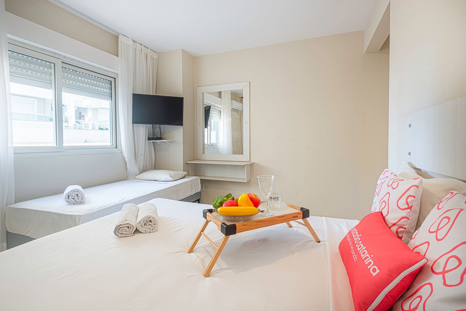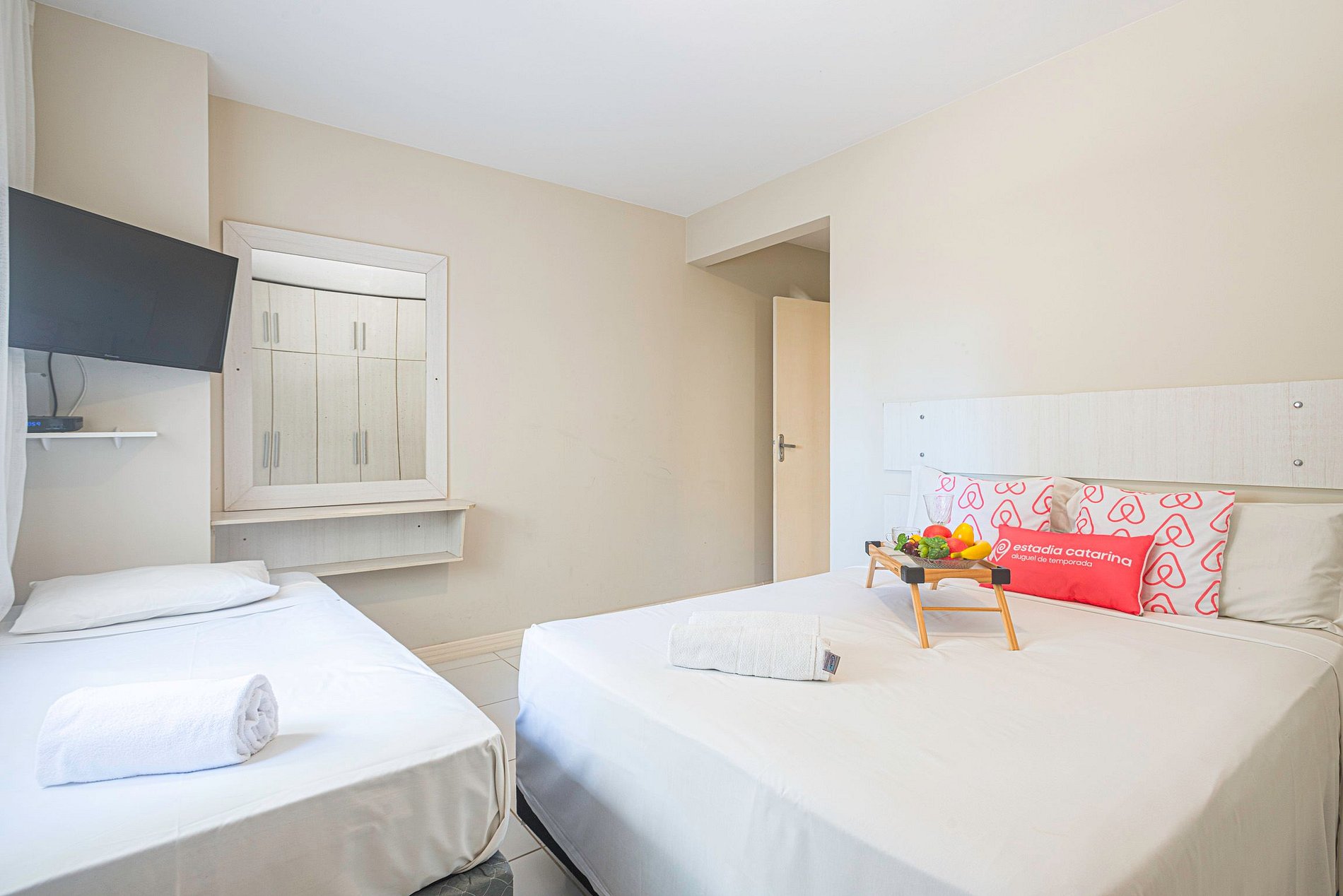 A Estadia Catarina oferece atendimento aos hóspedes diariamente, das 8h às 22h. Importante: Condomínio Familiar Você estará hospedado em um condomínio residencial e familiar. Por isso, algumas regras precisam ser seguidas com rigor, visando o bem-estar e a boa convivência de todos: Convivência e Barulho - NÃO ACEITAMOS RESERVAS PARA GRUPOS DE JOVENS. - Proibido o uso de caixas de som ou alto-falantes, de qualquer tamanho, em qualquer horário. - Silêncio obrigatório após as 22h. - É estritamente proibido realizar festas, eventos ou reuniões nas dependências do apartamento. Regras Gerais de Permanência - É proibido fumar ou utilizar drogas ilícitas dentro do apartamento e nas áreas comuns. - É terminantemente proibido receber visitas no local. - É obrigatório uso do elevador de serviço e da entrada de banhista com roupas de banho, ao ir e voltar da praia ou carregar qualquer tipo de material, inclusive lixos, compras e malas. - A chave será entregue somente ao responsável pela reserva. Não aceitamos reservas feitas para terceiros. Uso das Áreas Comuns As áreas de lazer do condomínio não estão disponíveis para hóspedes de temporada.Pet Friendly - Aceitamos 1 pet de pequeno porte por reserva, desde que seja educado, acostumado a ambientes internos e que faça as necessidades no local apropriado. Regras para pets: Taxa extra de R$120. Não é permitido subir em camas ou sofás. Danos ou limpezas especiais causadas pelo pet poderão ser cobrados. Limpeza e Amenidades - Não realizamos troca de roupas de cama e banho durante a estadia. - O apartamento é entregue com 1 rolo de papel higiênico por banheiro para a chegada. Reposições durante a estadia ficam por conta dos hóspedes. - Não fornecemos edredons ou cobertores extras. Há 1 manta por cama/colchão. Caso necessário, recomendamos que os hóspedes tragam cobertas adicionais, especialmente no inverno. - Não oferecemos login ou senha de serviços de streaming como Netflix, YouTube, Amazon Prime, entre outros. A perturbação aos vizinhos ou funcionários e o não cumprimento das regras do apartamento ou do condomínio estarão sujeitas a multa e são razões para encerrar a estadia imediatamente e realizar a cobrança por quaisquer danos, limpezas extras e multas condominiais.