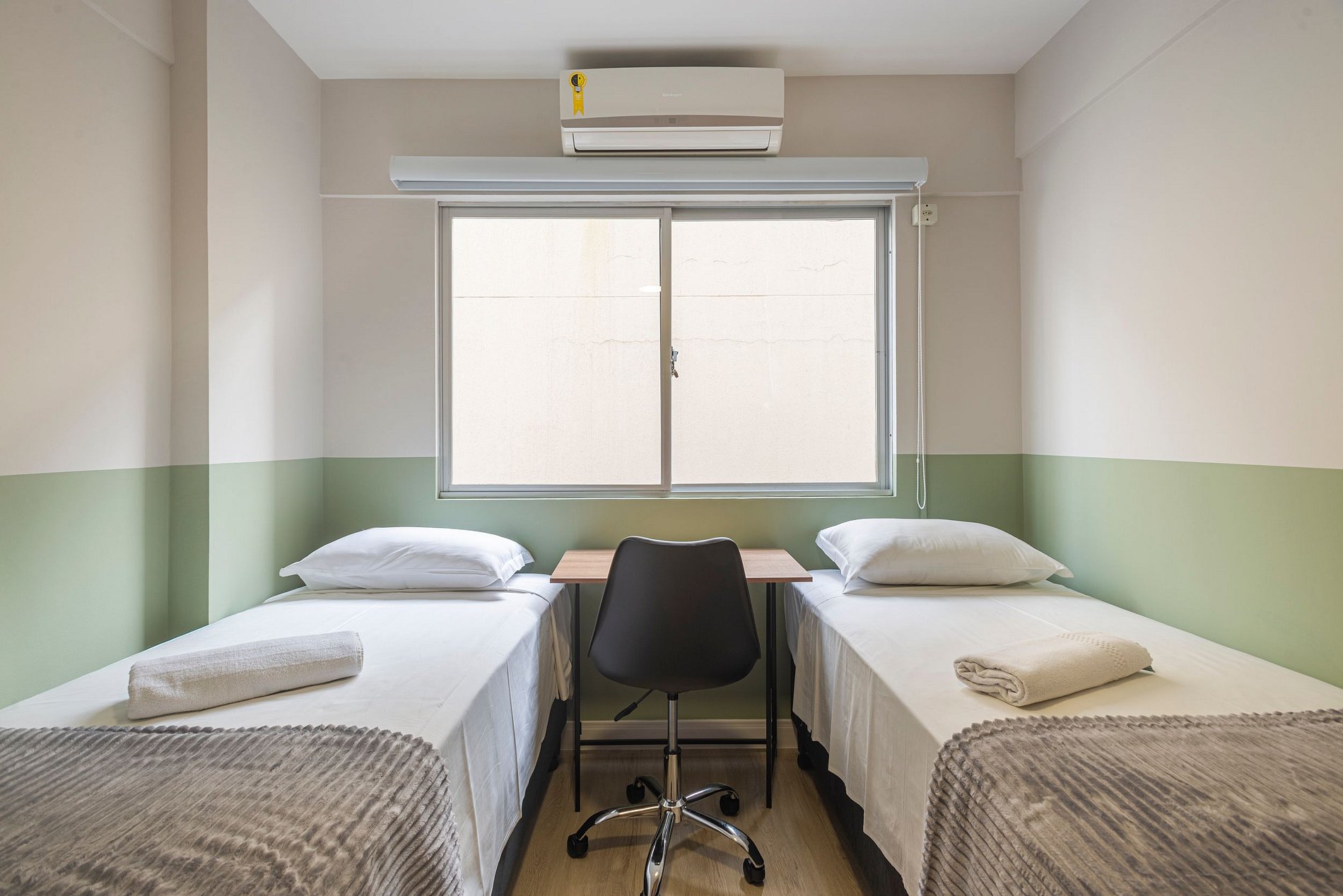 Você encontrará todas as camas prontas para uso, com roupas de cama limpas e higienizadas, acompanhadas de travesseiros e mantas. Além disso, fornecemos jogos de banho completos, incluindo uma toalha de banho para cada hóspede.