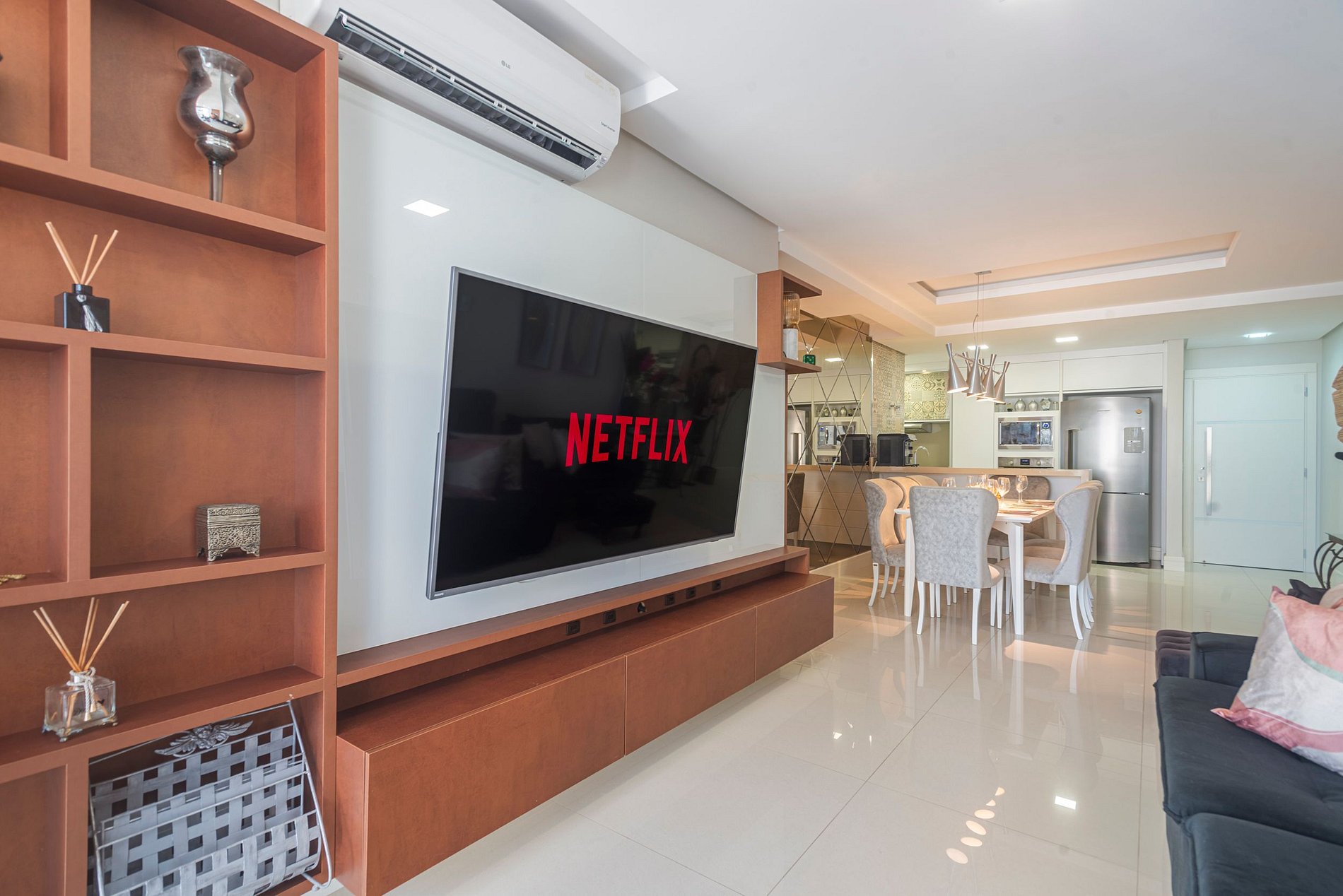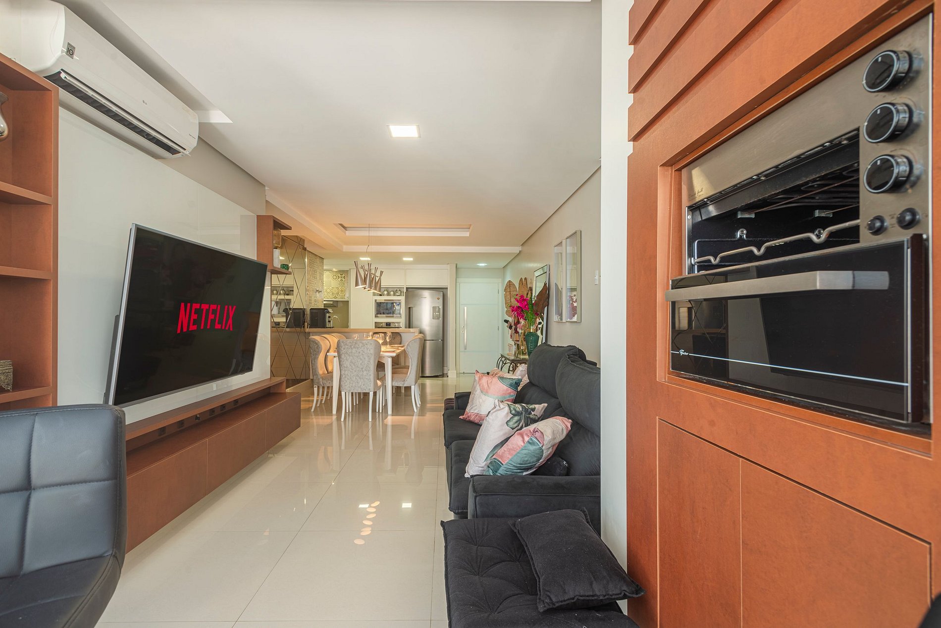 > 3 suítes amplas e confortáveis, todas com ar-condicionado e Smart TV.> Cozinha moderna e completa, equipada com eletrodomésticos e utensílios para que você se sinta em casa. > Sala de estar elegante, climatizada e com Smart TV, espaço ideal para relaxar ou socializar. > Sacada com vista de tirar o fôlego, onde é possível aproveitar momentos inesquecíveis. > Área de serviço privativa, incluindo máquina lava & seca.> Duas vagas de garagem privativas.