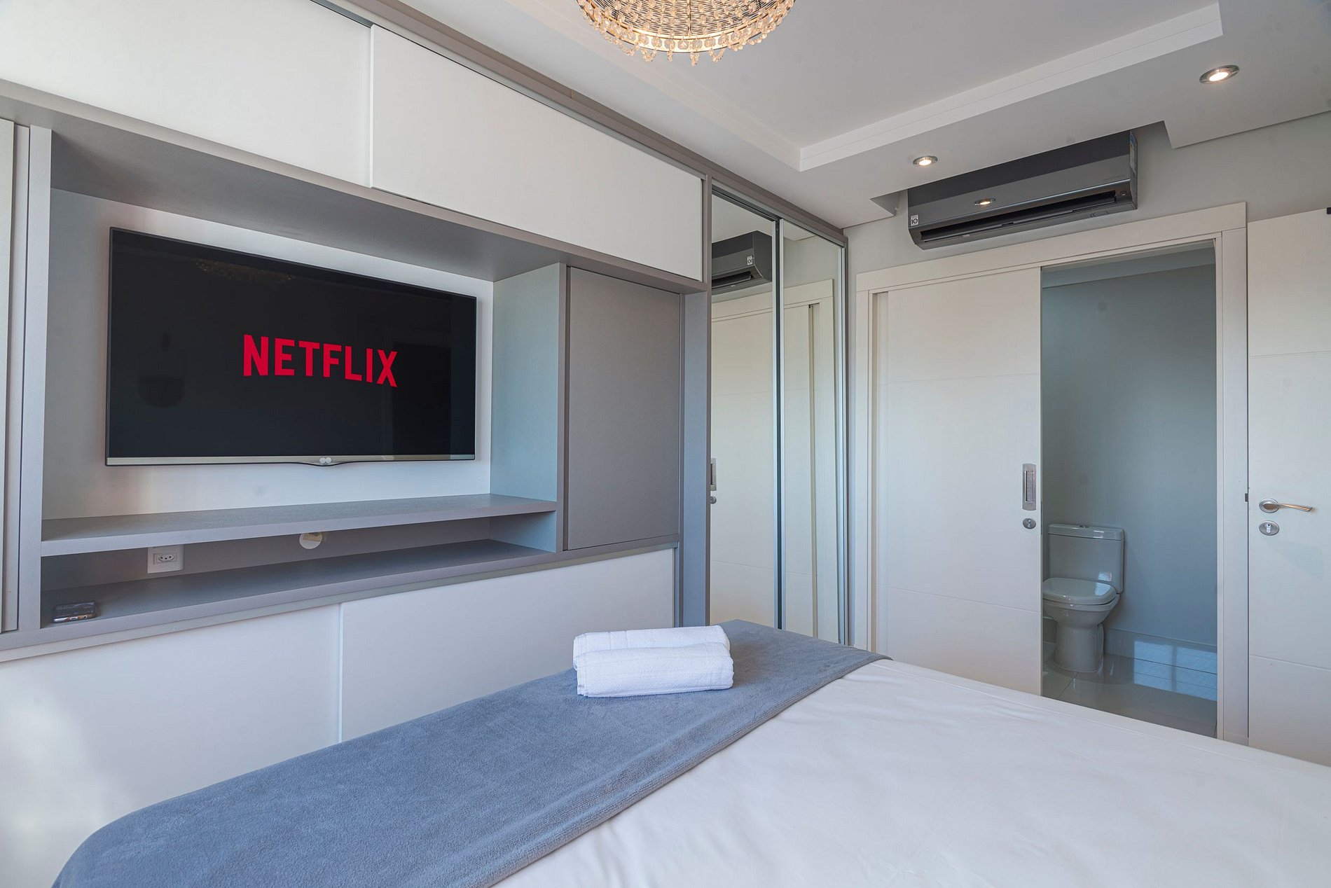 A acomodação conta com ar condicionado nas três suítes e também na sala de estar.