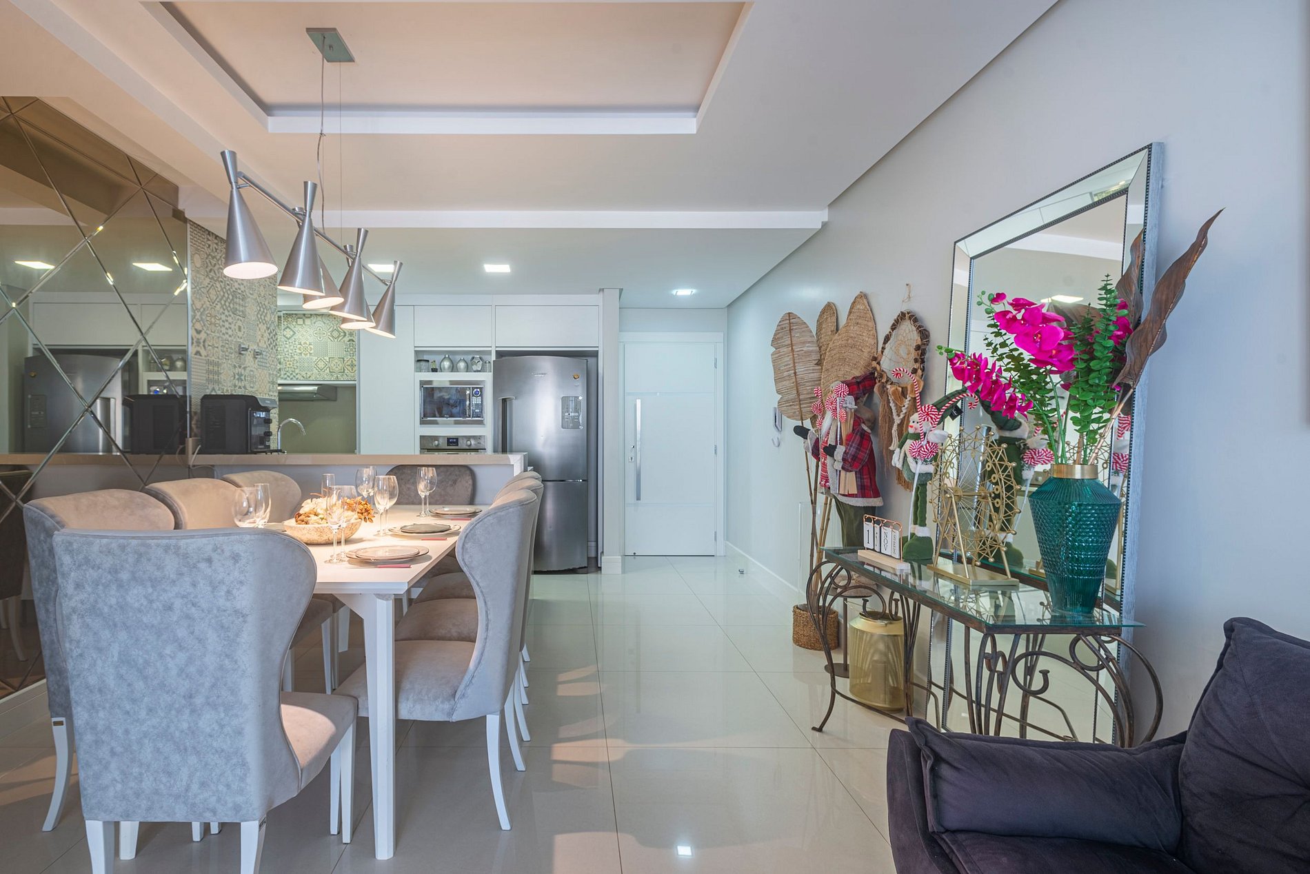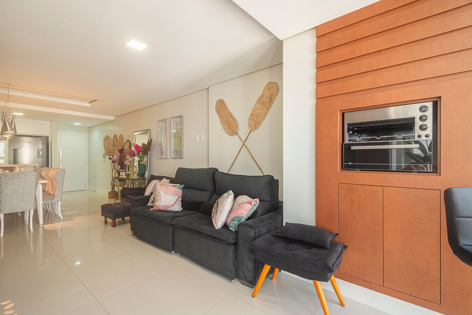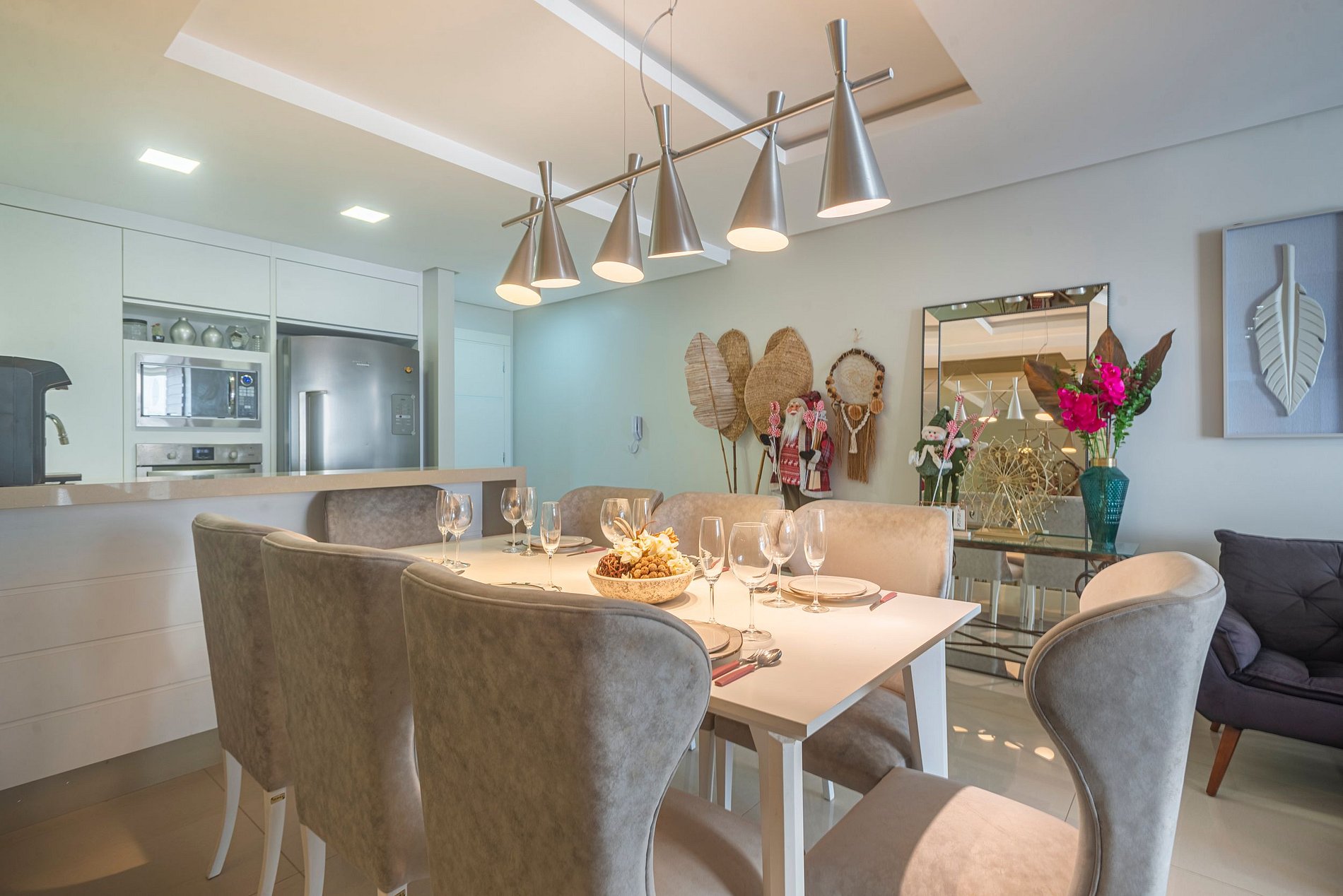 > 3 suítes amplas e confortáveis, todas com ar-condicionado e Smart TV.> Cozinha moderna e completa, equipada com eletrodomésticos e utensílios para que você se sinta em casa. > Sala de estar elegante, climatizada e com Smart TV, espaço ideal para relaxar ou socializar. > Sacada com vista de tirar o fôlego, onde é possível aproveitar momentos inesquecíveis. > Área de serviço privativa, incluindo máquina lava & seca.> Duas vagas de garagem privativas.