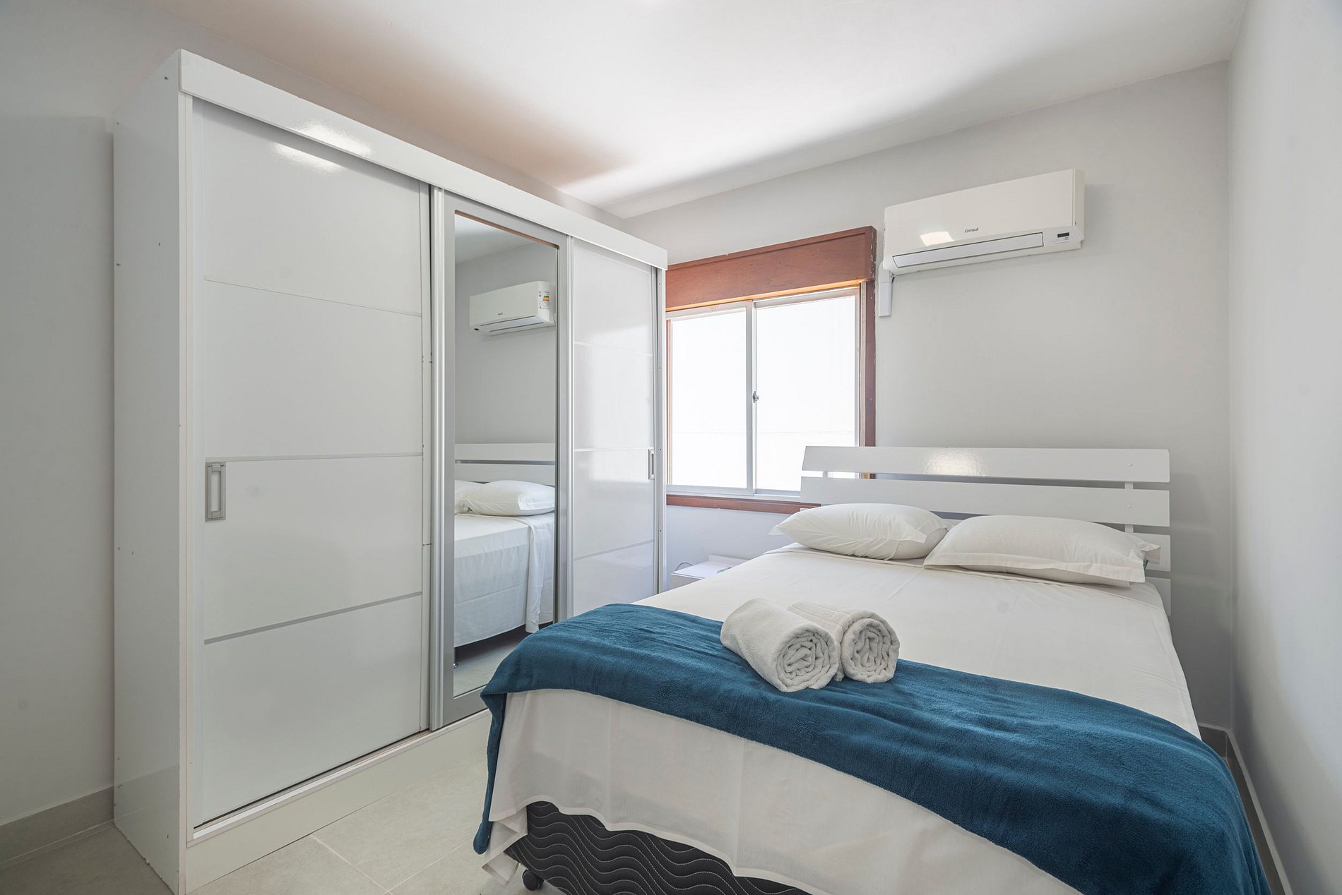 Completo, com três quartos, todos com ar-condicionado.