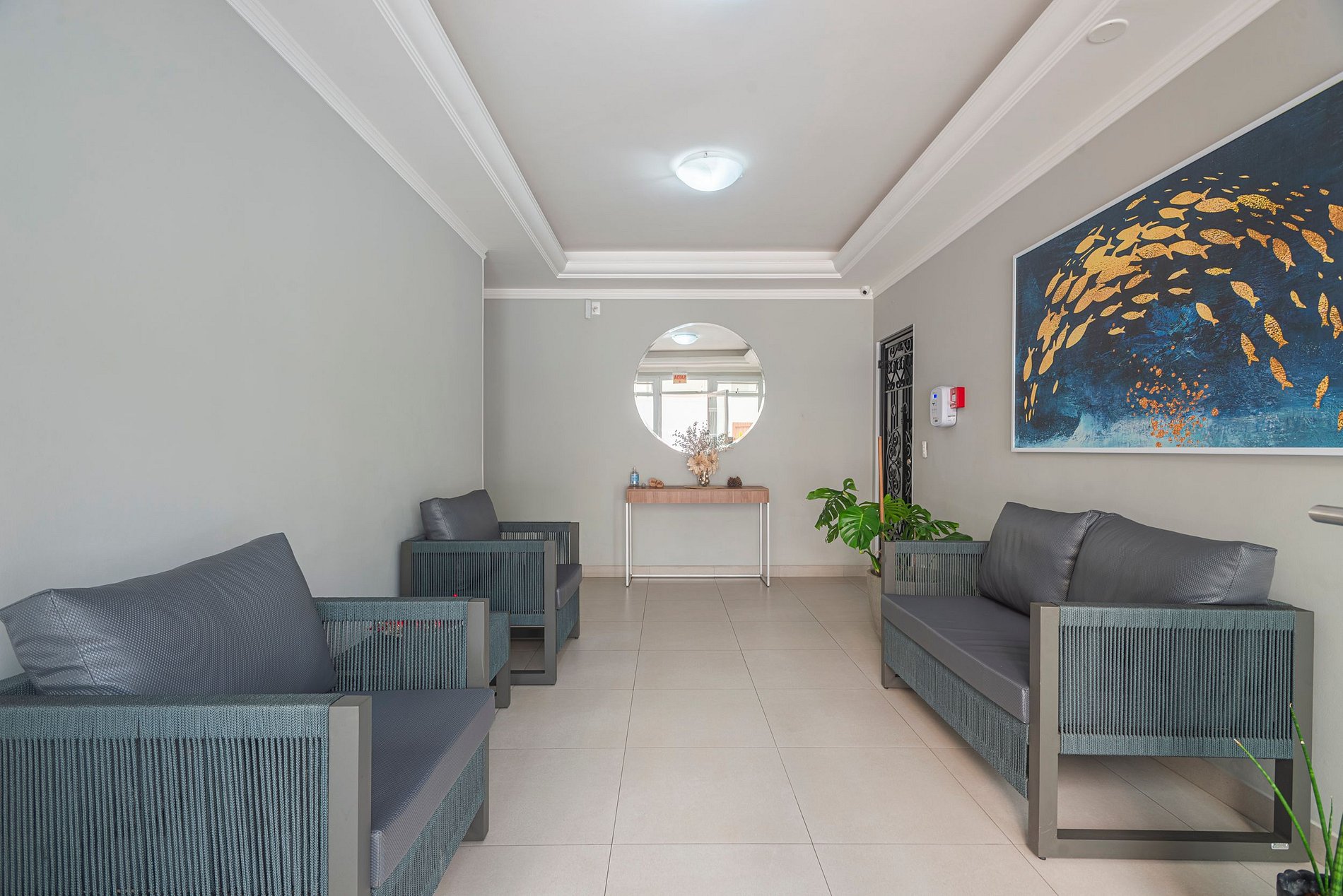 Área de estar com sofá/cadeira