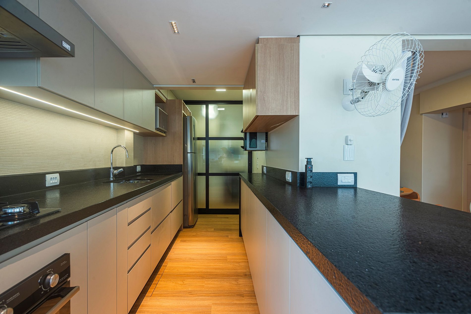 - Cozinha ampla e privativa com churrasqueira estilo americana a gás.