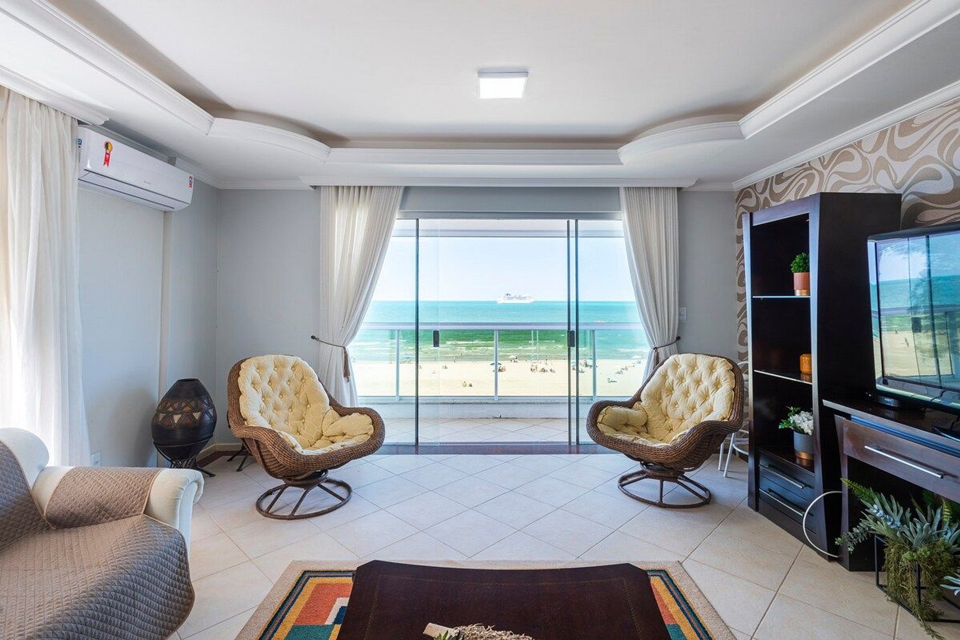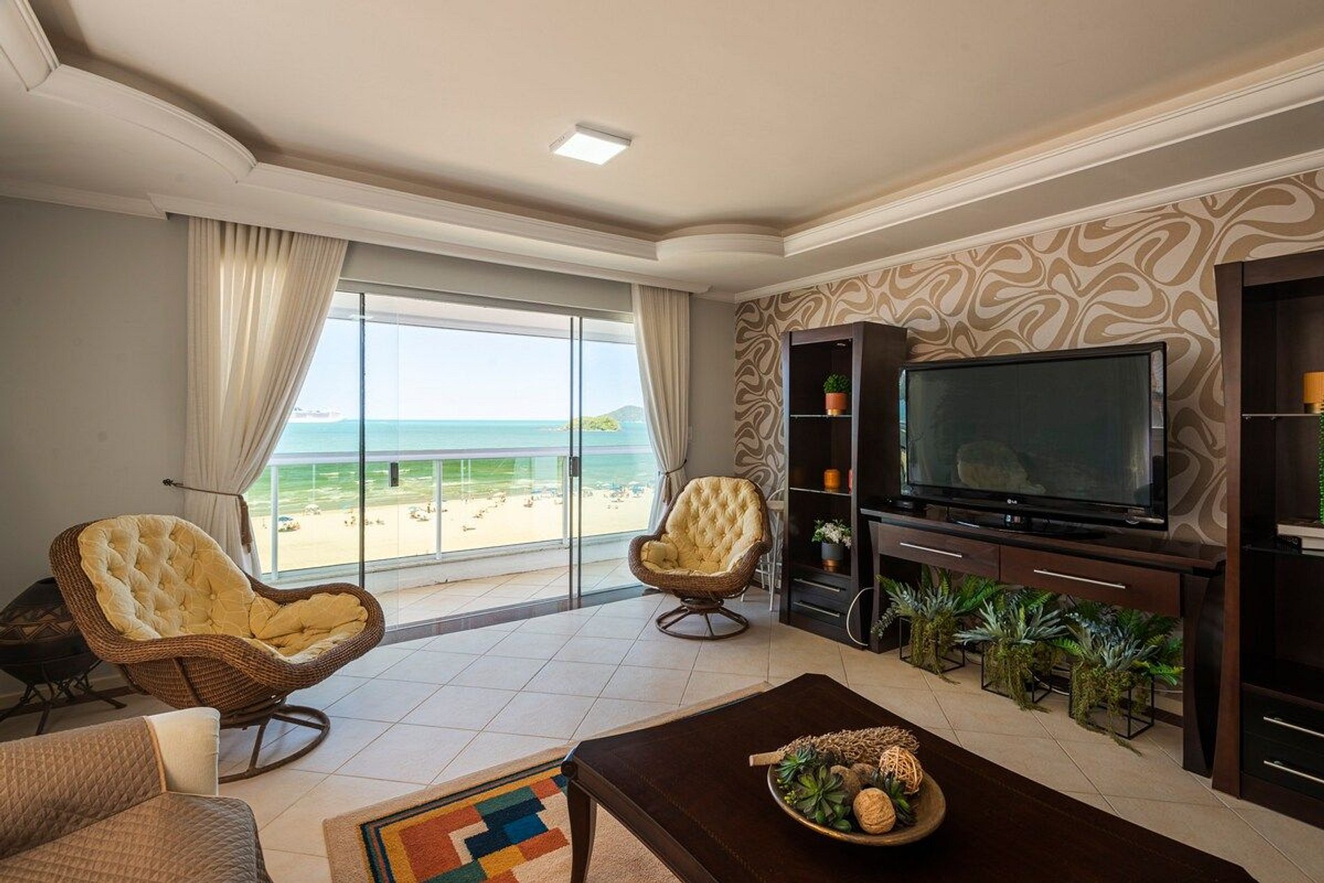 Beira mar! O condomínio fica em frente à praia central de Balneário Camboriú.