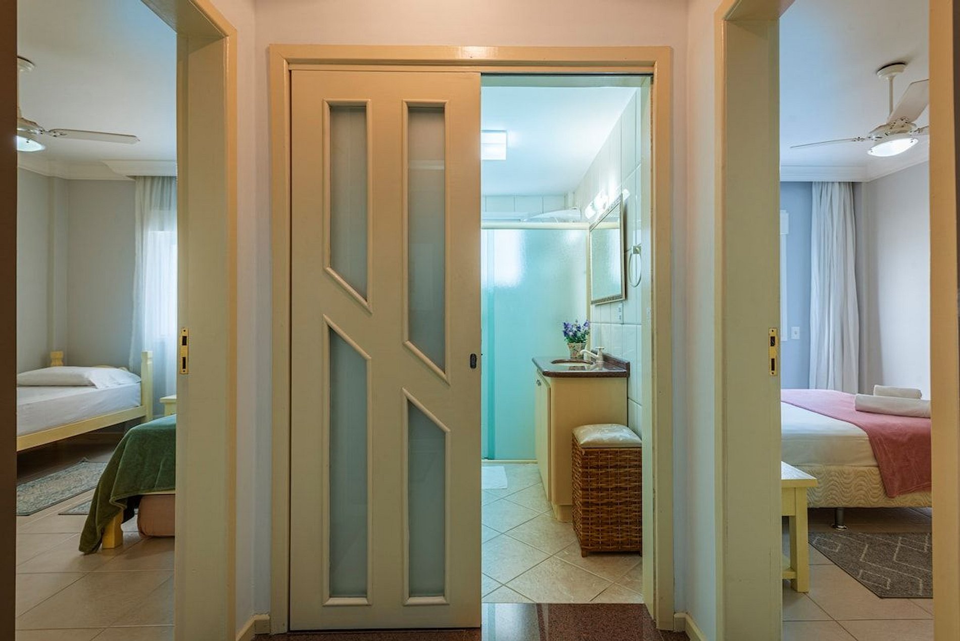 A acomodação conta com ar condicionado nos três quartos e também na sala de estar.