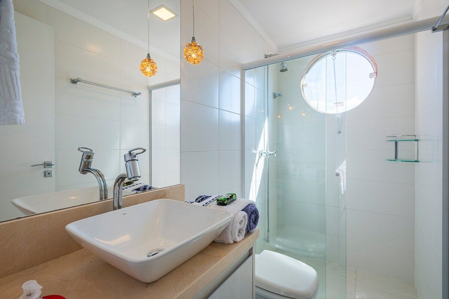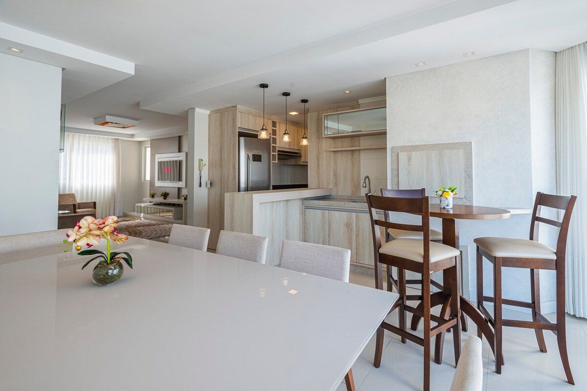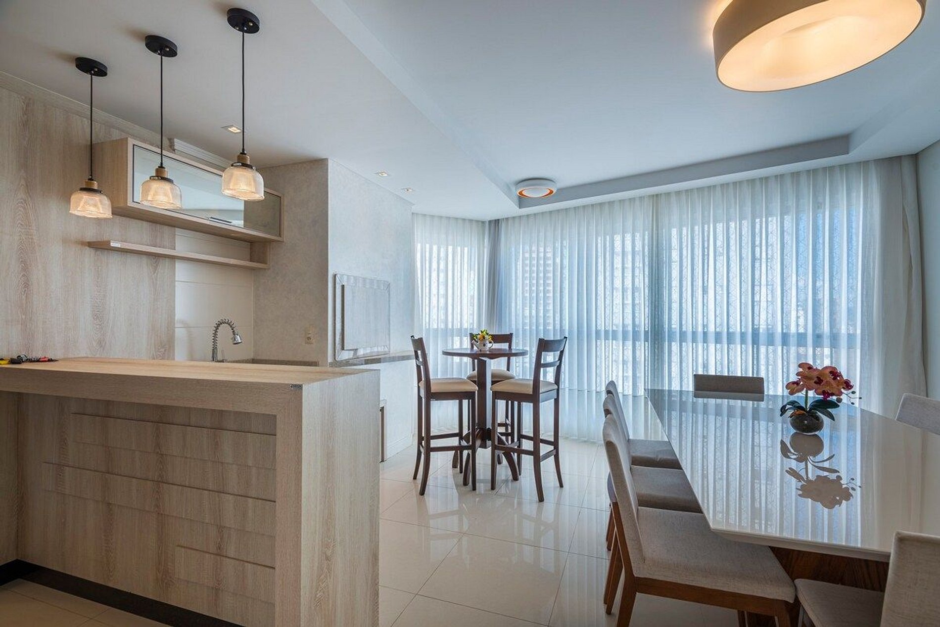 [CONDOMÍNIO FAMILIAR - APARTAMENTO DESTINADO EXCLUSIVAMENTE A FAMÍLIAS] Apartamento amplo, bem iluminado e ventilado. Com uma atmosfera moderna e clean. > TRÊS SUITES. Uma com cama king size, duas com cama queen size. Todas com ar condicionado. > Varanda integrada com CHURRASQUEIRA, ótima para passar bons momentos em FAMÍLIA. > Duas vagas de garagem privativas. Para quem busca espaço e o conforto de um apartamento alto padrão, em uma localização central que permite fazer tudo a pé.