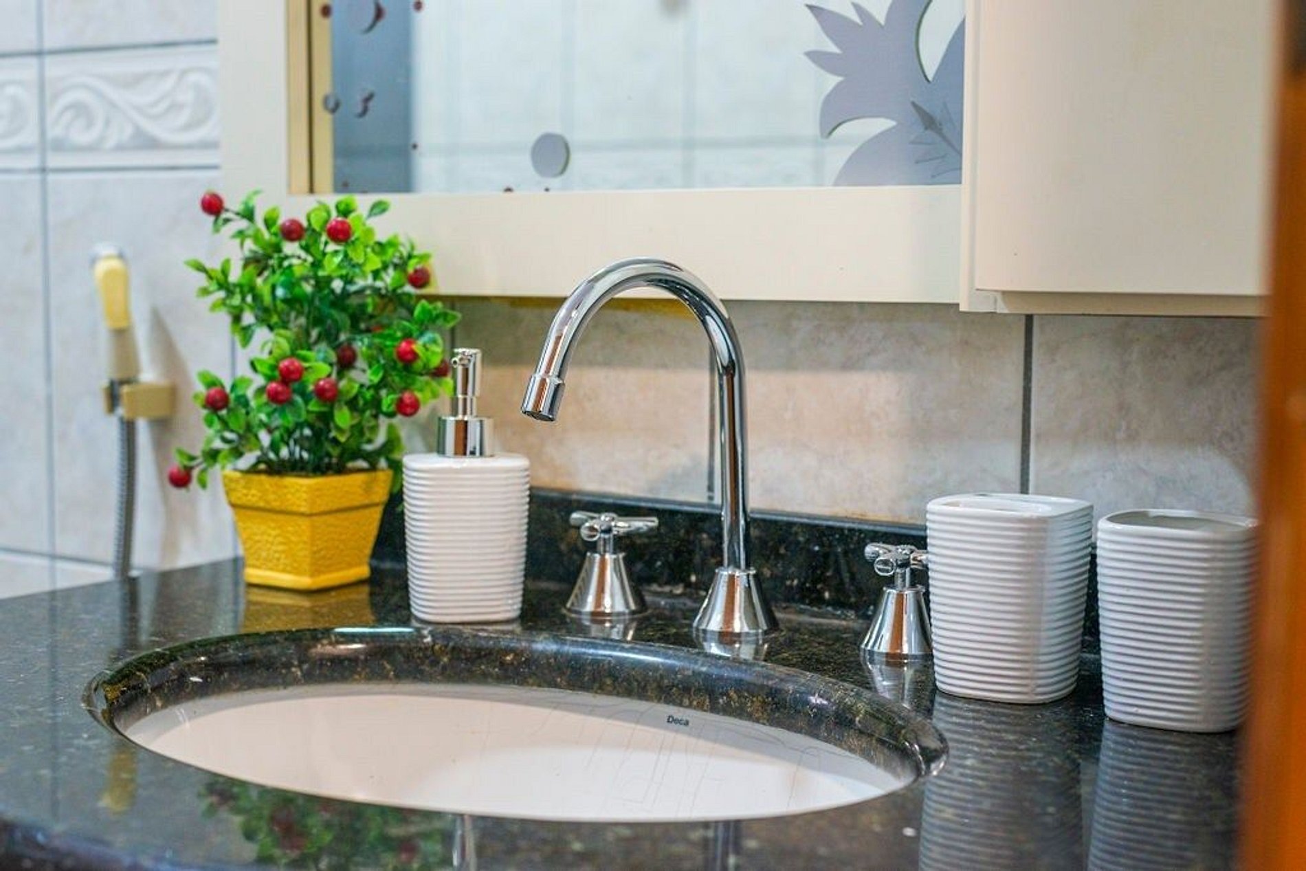 > O apartamento é entregue com 1 rolo de papel higiênico por banheiro para a chegada. Reposições durante a estadia ficam por conta dos hóspedes.