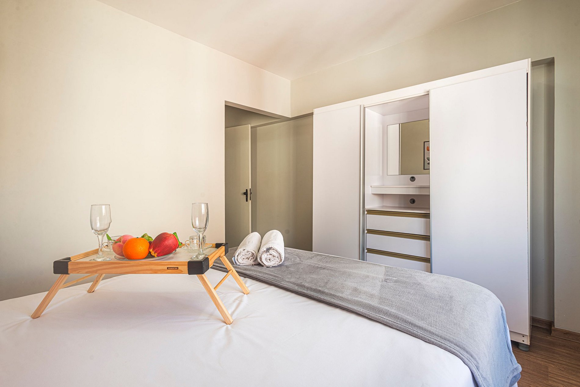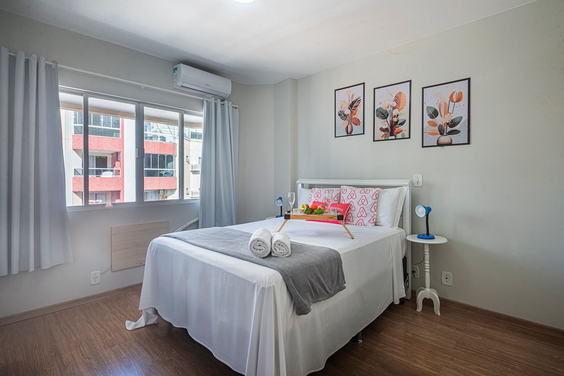 2 quartos (sendo 1 suíte), ambos com ar-condicionado
