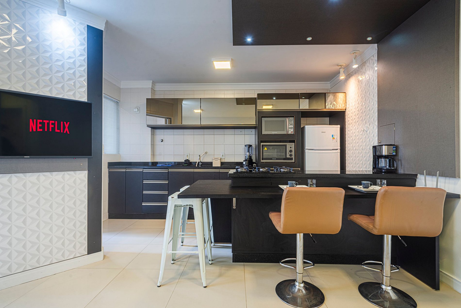> Cozinha Equipada: A cozinha está equipada com todos os utensílios e eletrodomésticos necessários para preparar suas refeições, caso deseje. Além disso, a proximidade com excelentes restaurantes lhe oferece a opção de explorar a gastronomia local.
