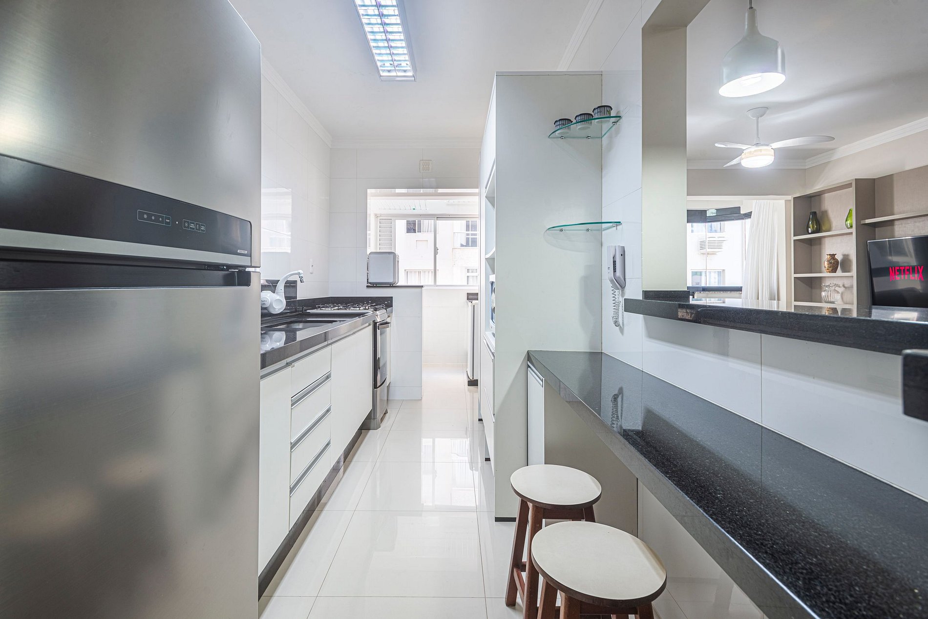 Nosso apartamento oferece uma atmosfera aconchegante e acolhedora, garantindo que você se sinta em casa durante toda a sua estadia. O espaço inclui uma sala de estar confortável, perfeita para relaxar após um dia agitado na cidade. Além disso, a cozinha equipada permitirá que você prepare suas refeições favoritas, caso deseje desfrutar de uma experiência gastronômica mais intimista.